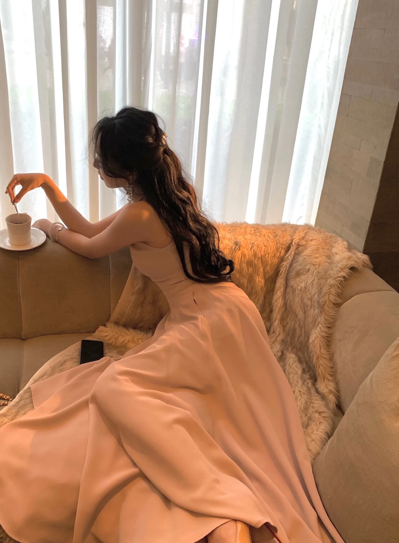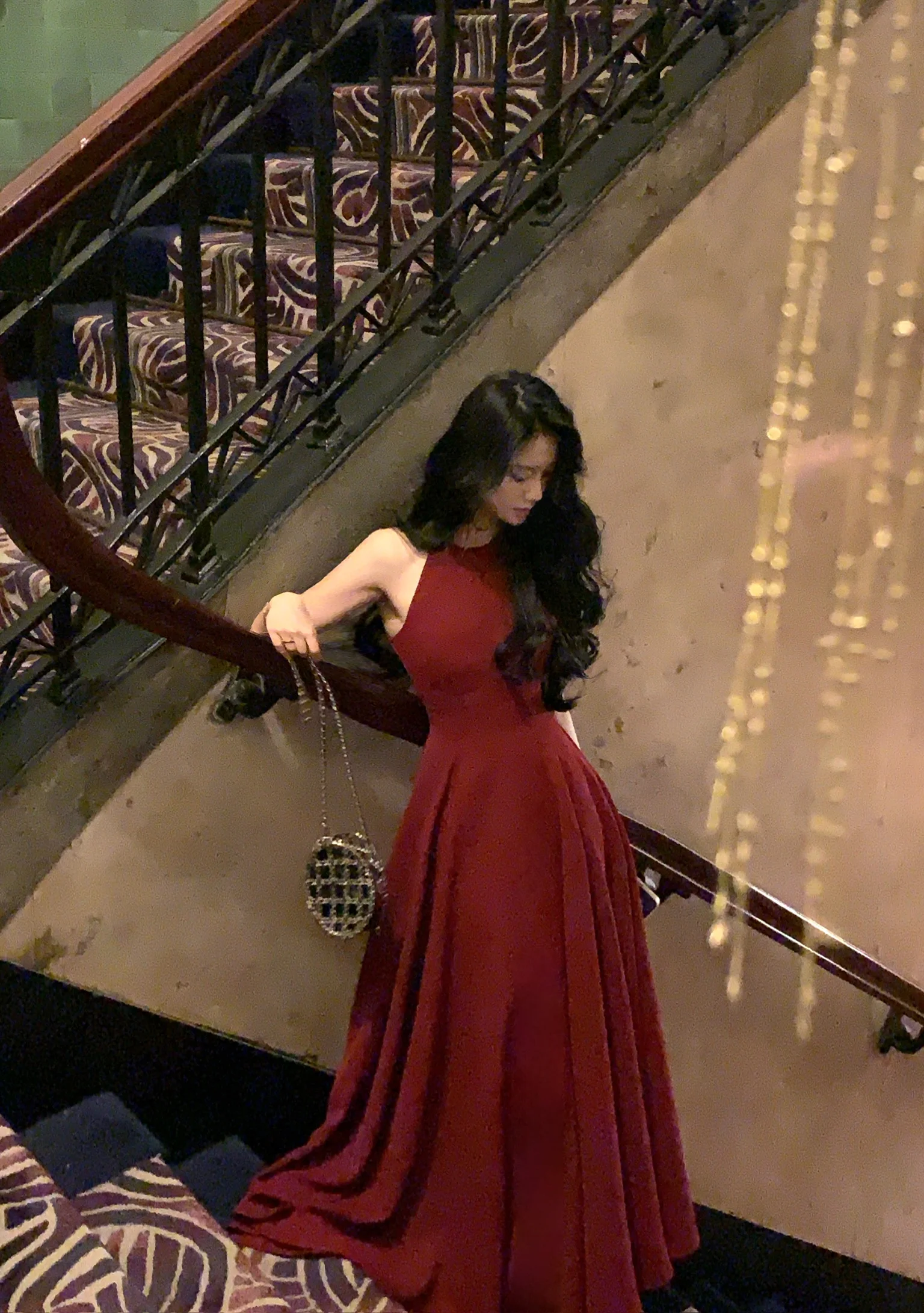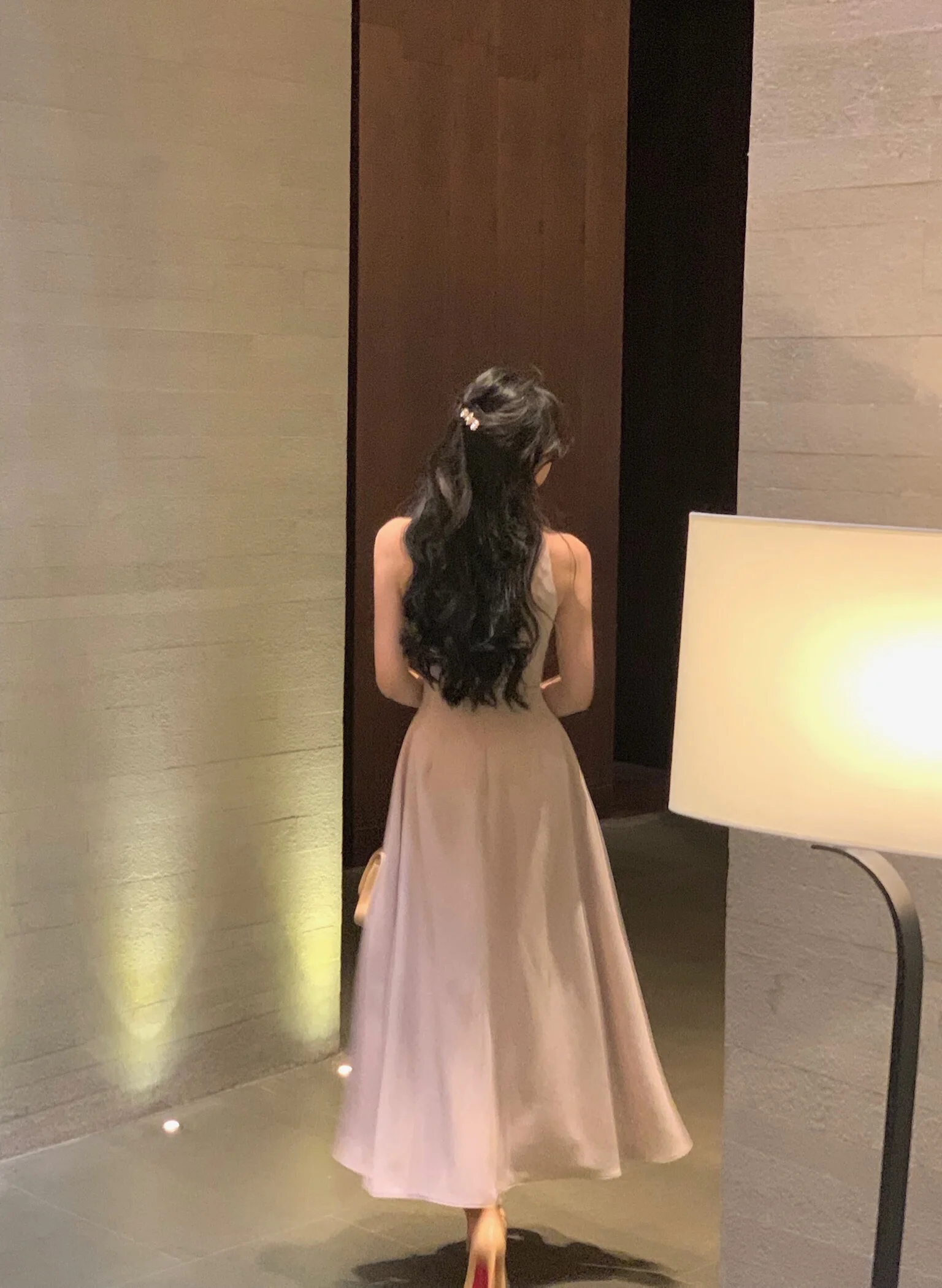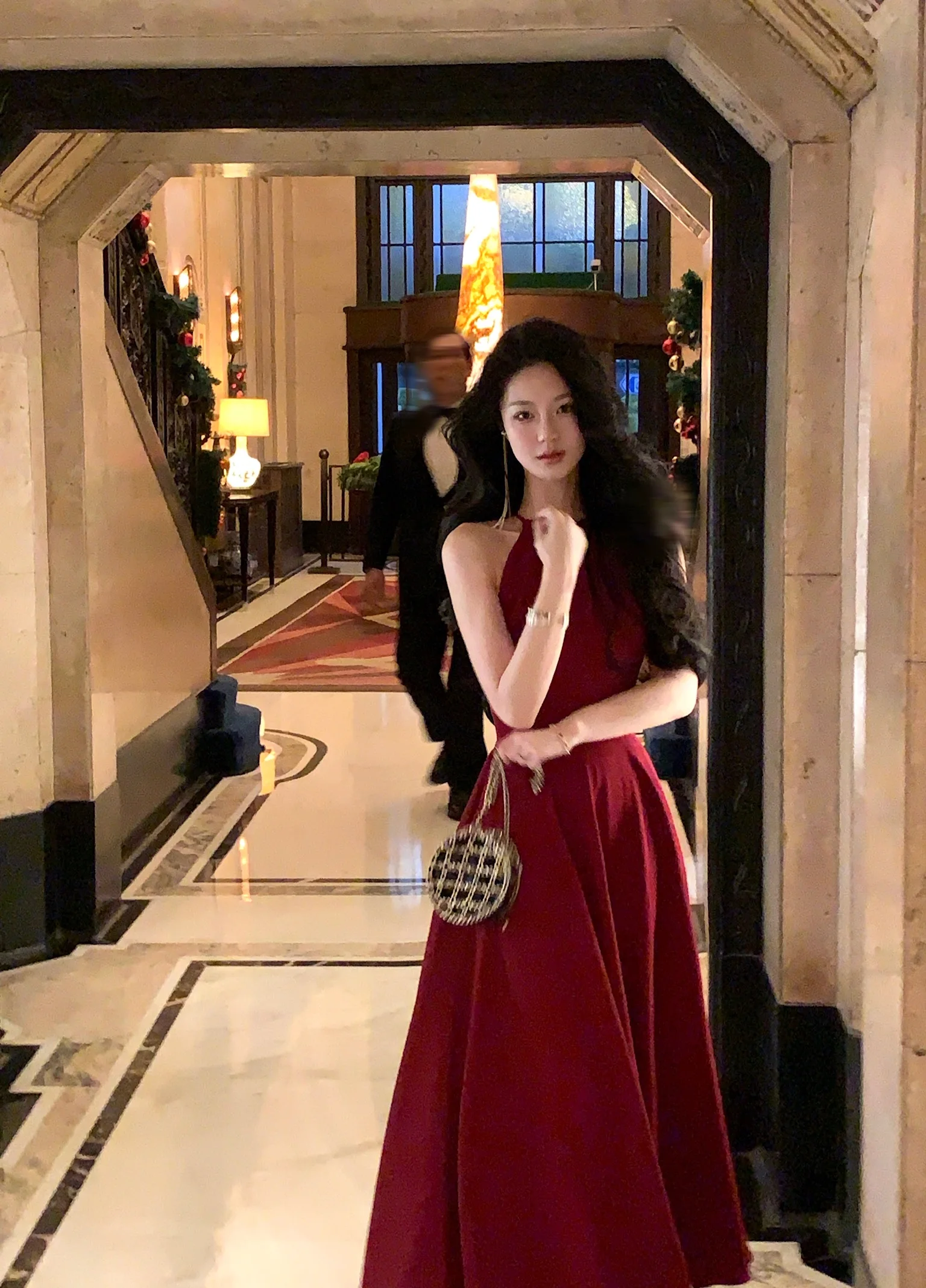 Fleepmart France Vintage Halter Evening Party Long Dresses for Women Solid Sleeveless A-line Princess Wedding Prom Robe New Spring Vestido