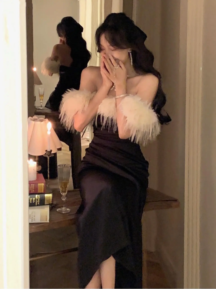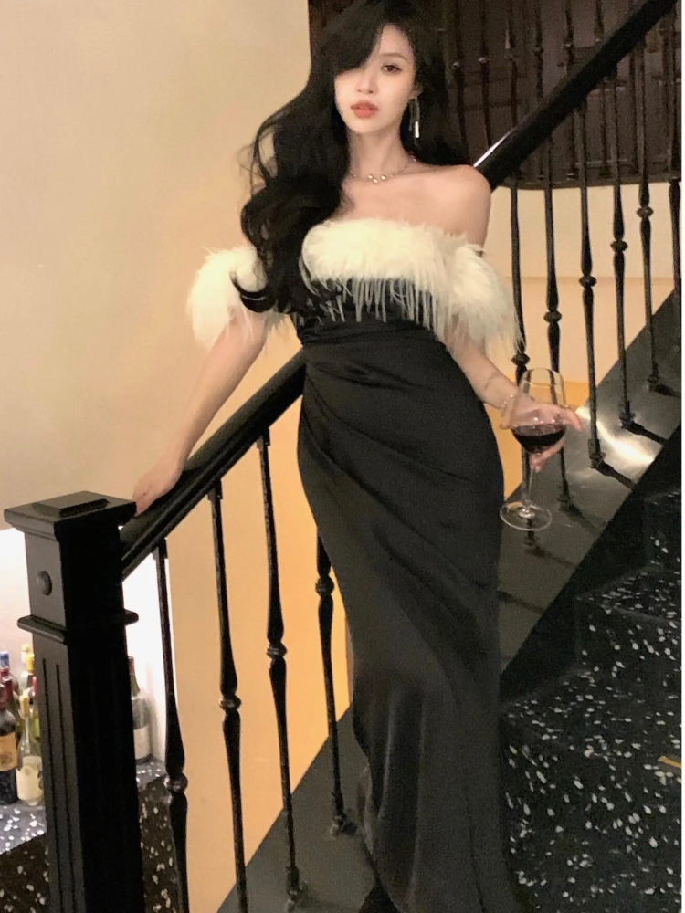 Fleepmart France Vintage Luxury Dresses Women Sexy Slash Neck Off Shoulder Bandage Backless Slim Party Dress Ladies
