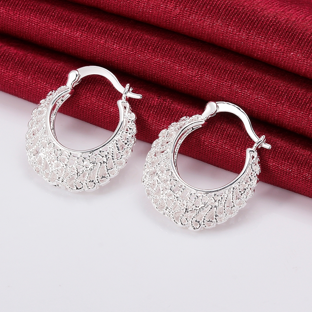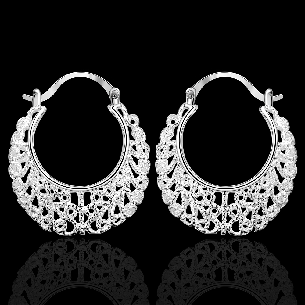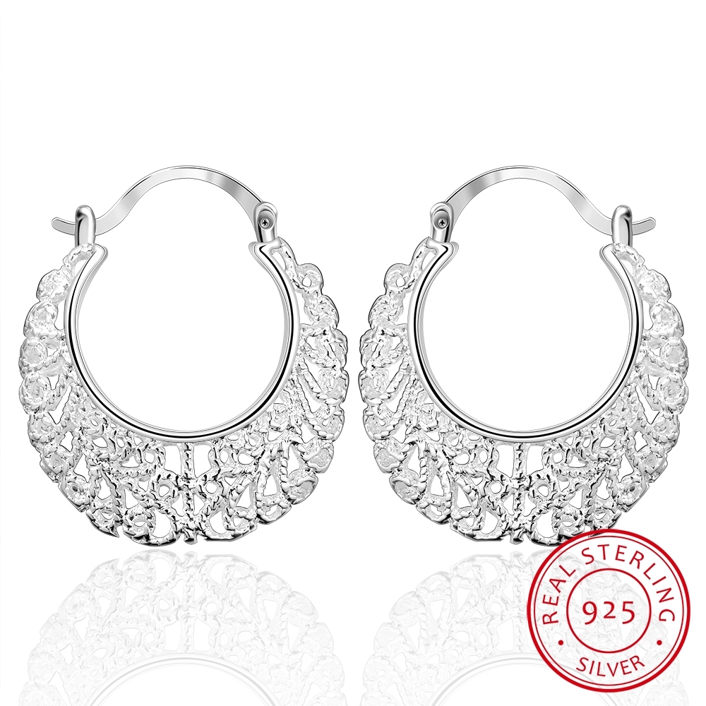 Fleepmart Genuine Real Solid 925 Sterling Silver Hollow Flower Hoop Earrings For Women Fine Jewerly Female Round Smooth Earrings Gift