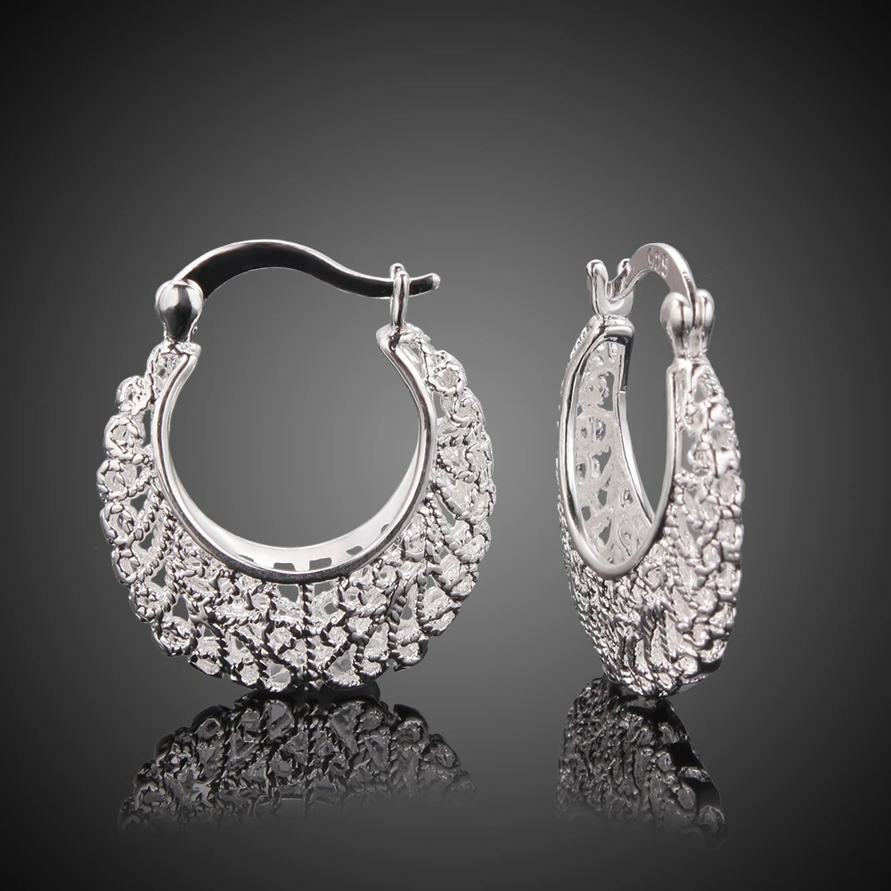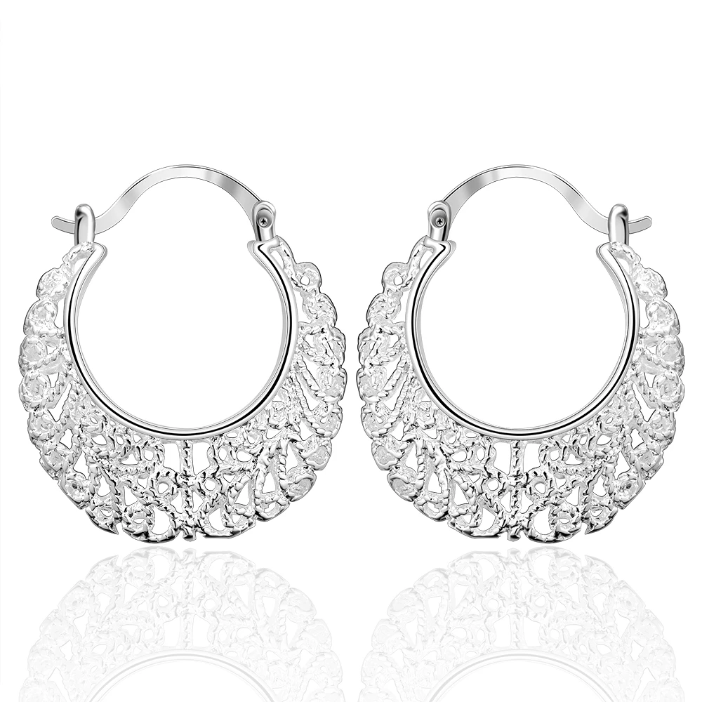 Fleepmart Genuine Real Solid 925 Sterling Silver Hollow Flower Hoop Earrings For Women Fine Jewerly Female Round Smooth Earrings Gift