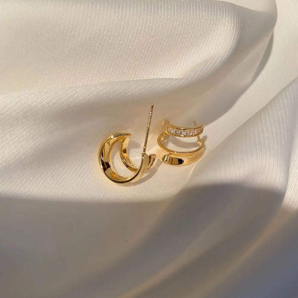 Fleepmart Geometric Elegant Party Gift Alloy Woman Korean Style C Shaped Jewelry Stud Earrings