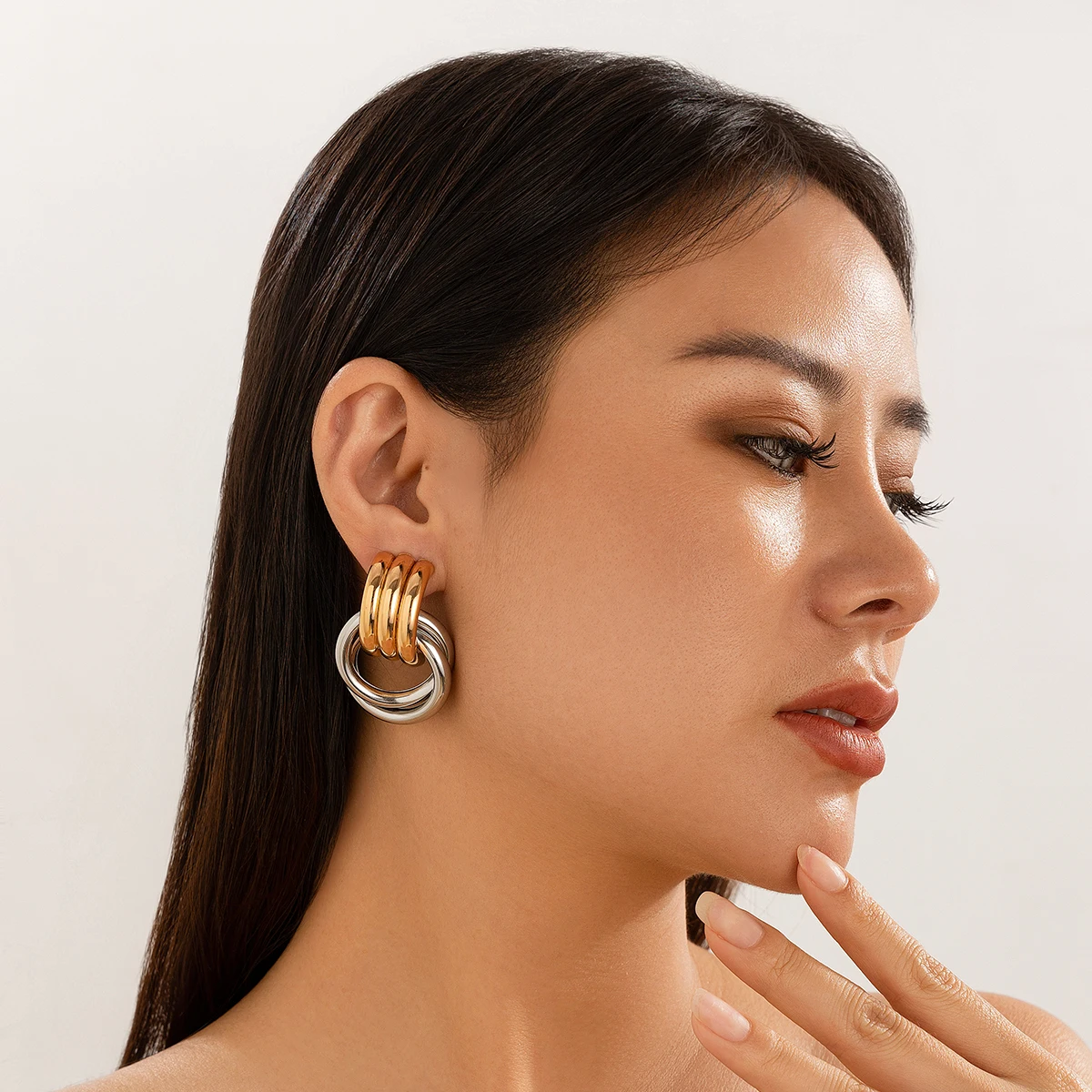 Fleepmart Geometric Multilayer Round Circle Earrings for Women Trend Metal Piercing Stud Earrings Female Punk Party Ear Jewelr Fleepmart Geometric Multilayer Round Circle Earrings for Women Trend Metal Piercing Stud Earrings Female Punk Party Ear Jewelr