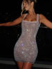 Mozision Glitter Backless Sexy Mini Dress For Women Robe Fashion New Square Collar Sleeveless Sparkle Bodycon Club Dress Vestido