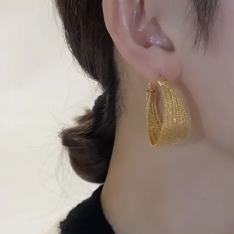Fleepmart Gold Color Exaggerated Metal Geometric Big Earrings Simple Personality 2024 Fashion Women’s Earrings Wedding jewellery Gift