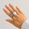 Fleepmart Gold Color Flower Crystal Baroque Pearl Open Ring for Women Fashion Rings Set Engagement Party Gift Temperament Jewelry