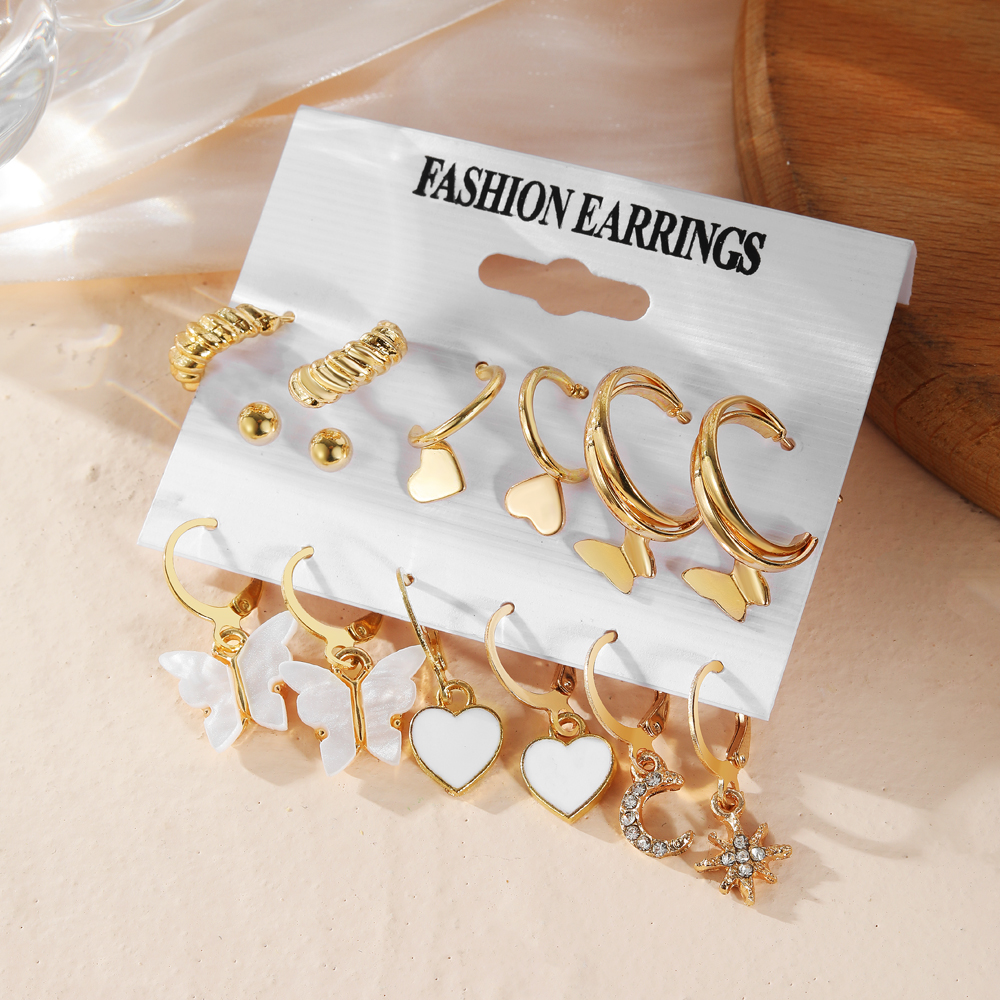Fleepmart Gold Color Metal Pearl Acrylic Earrings Set for Women Butterfly Geometric Twisted Exaggerated Earrings Fashion Jewelry