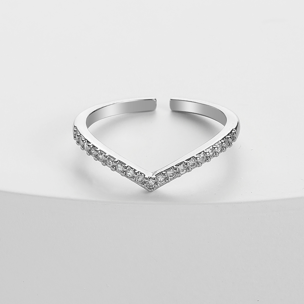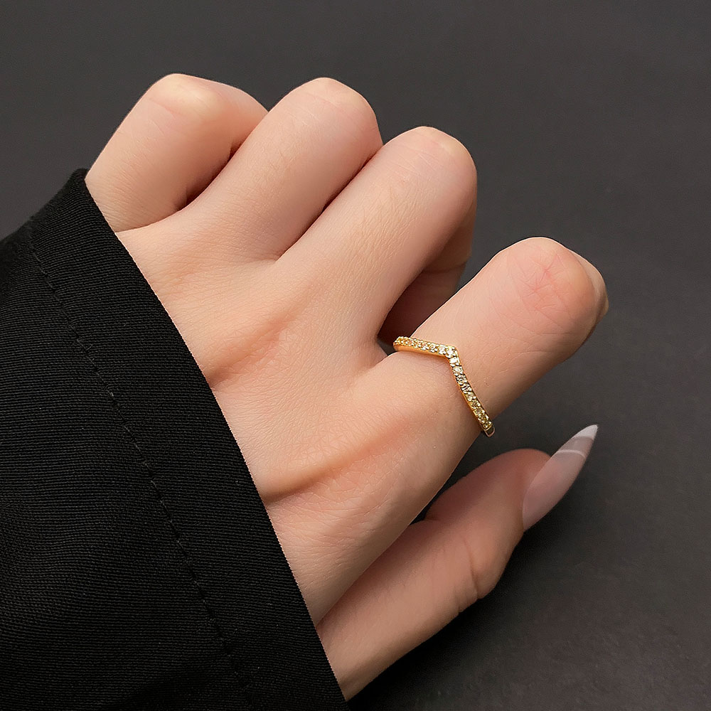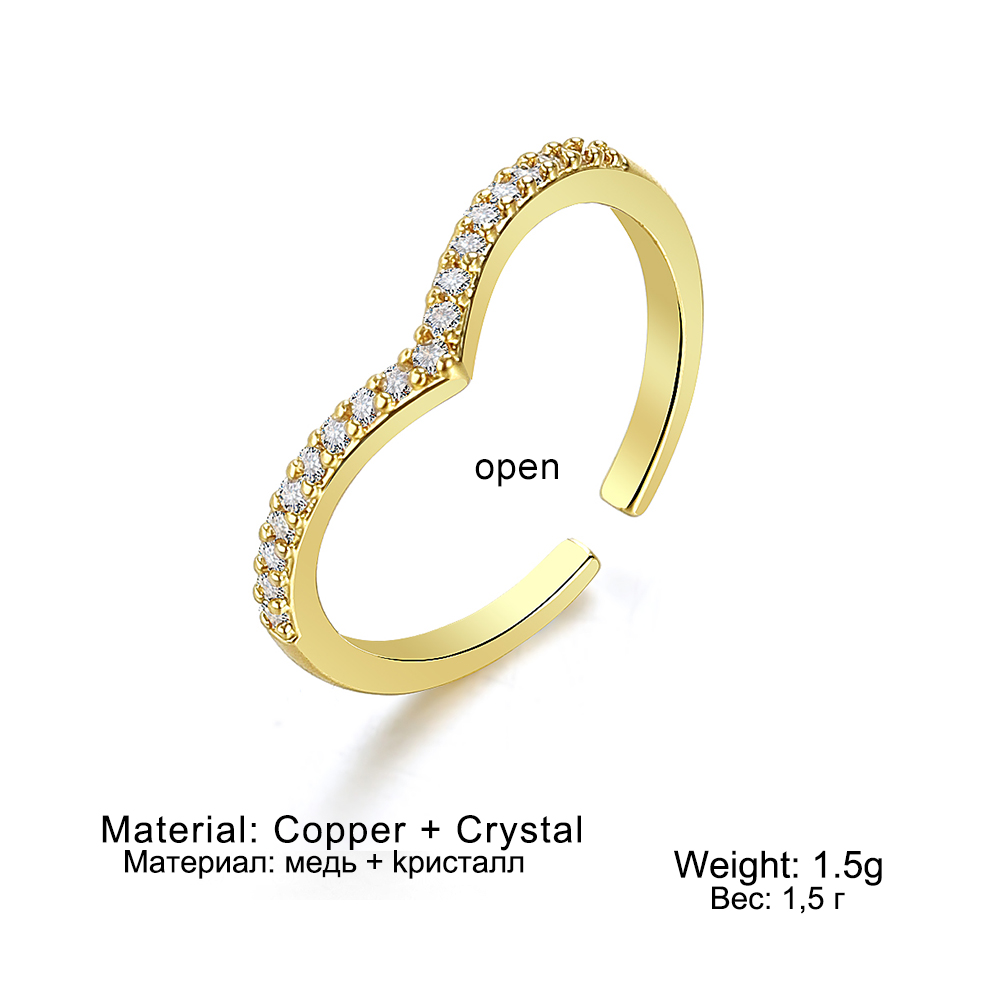 Fleepmart Gold Color Silver Color Classical Rings for Women Heart V Type Crystal Cubic Zirconia Shiny Finger Ring Fashion Jewelry