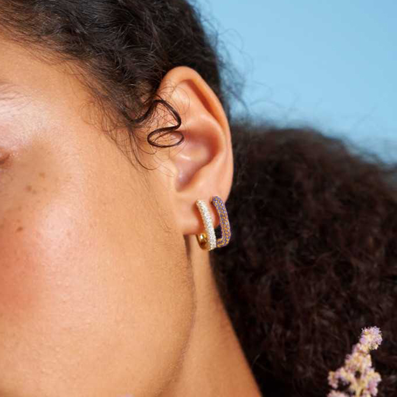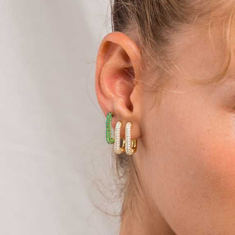 fleepmart Gold Color Silver Color Diamond Gold Hoop Earrings For Women Gift Cubic Zirconia Jeweled Geometric Rectangle Earring