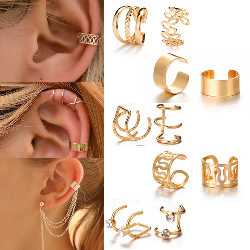 Fleepmart Gold Leaves Ear Cuff Black Non-Piercing Ear Clips Fake Cartilage Earrings Clip Earrings For Women Men Wholesale Jewelry