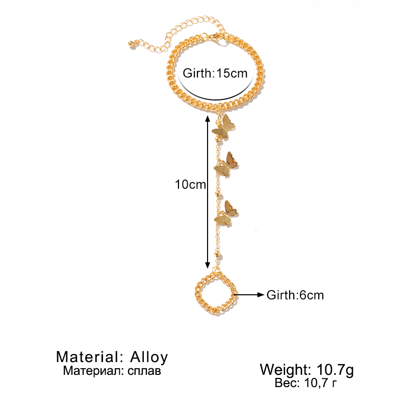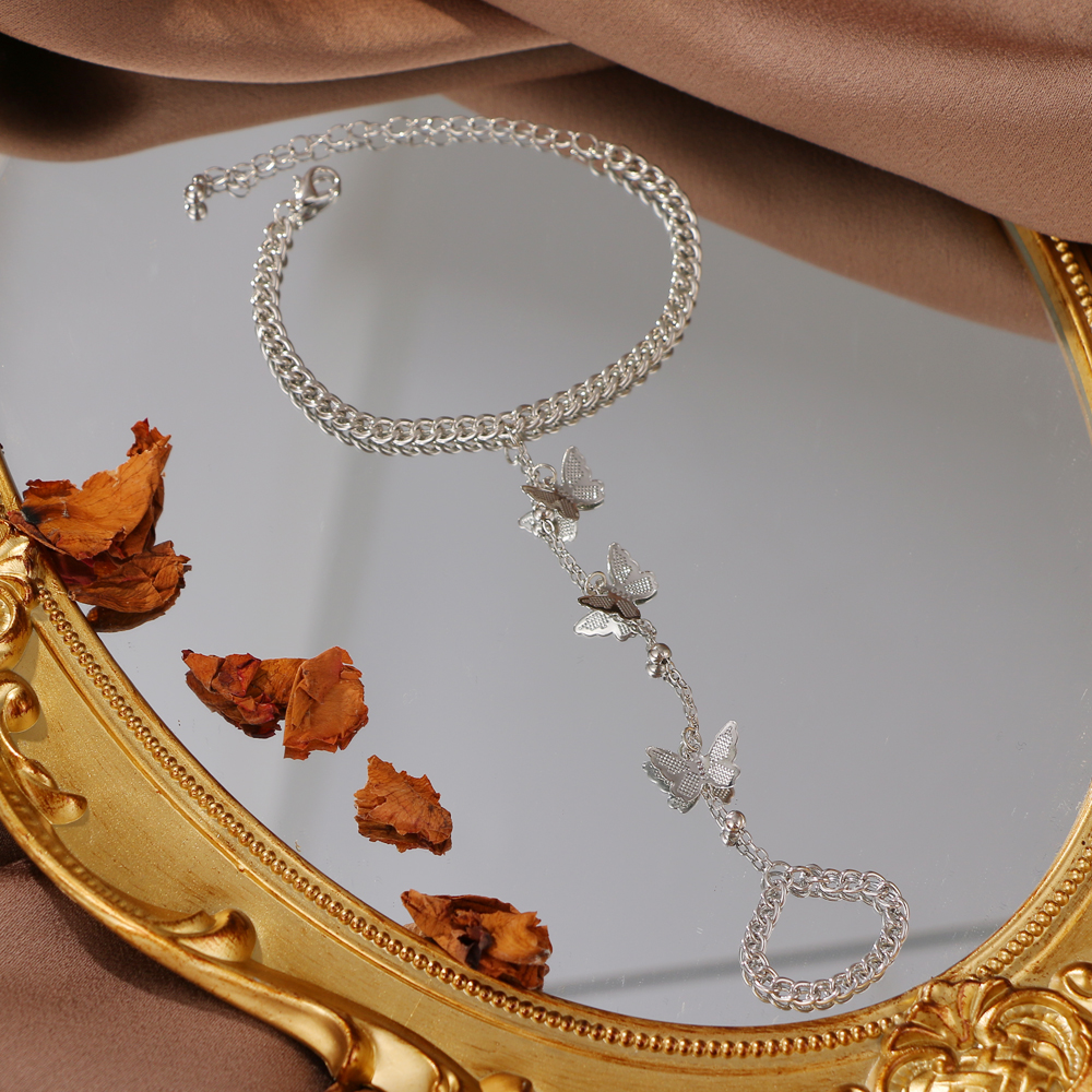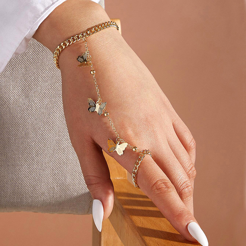 Fleepmart Gold Silver Color Butterfly Ring Bracelet for Women Wrist Chain Jewelry Fashion Hand Back Bangles Female Arm Link Ornament
