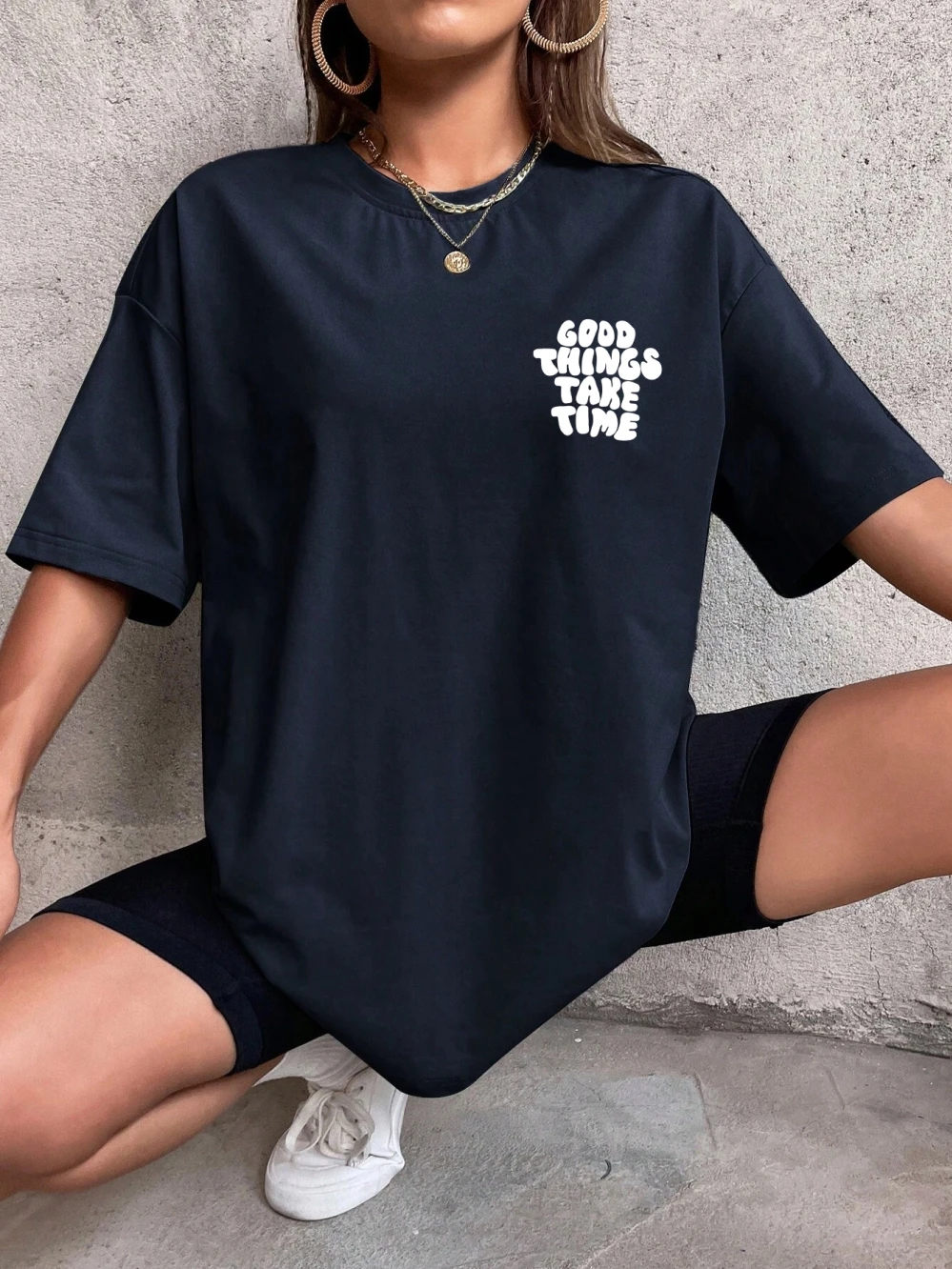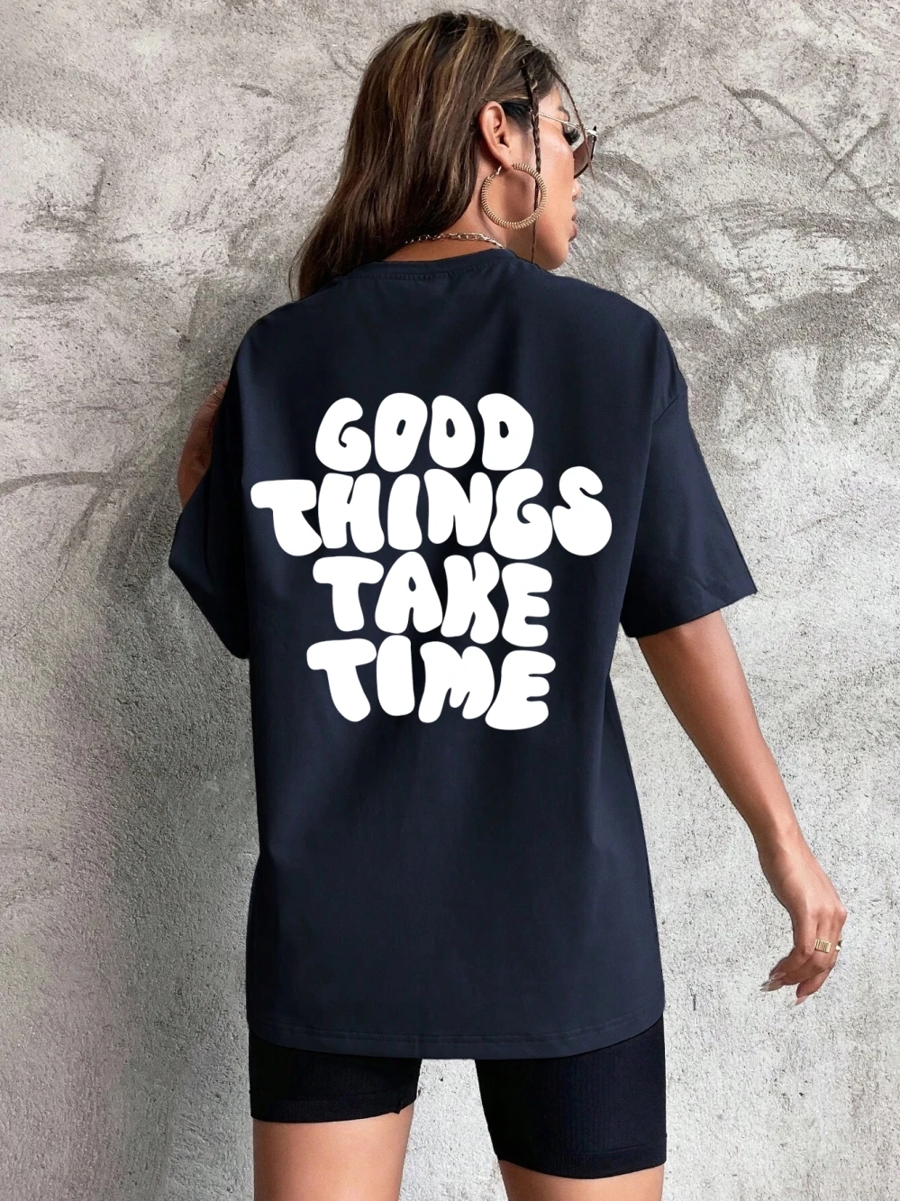 Fleepmart Good Things Take Time Art Letter T Shirts Women Fashion Cotton Tops O-Neck Casual Tee Shirt Summer Comfortable Sportswear