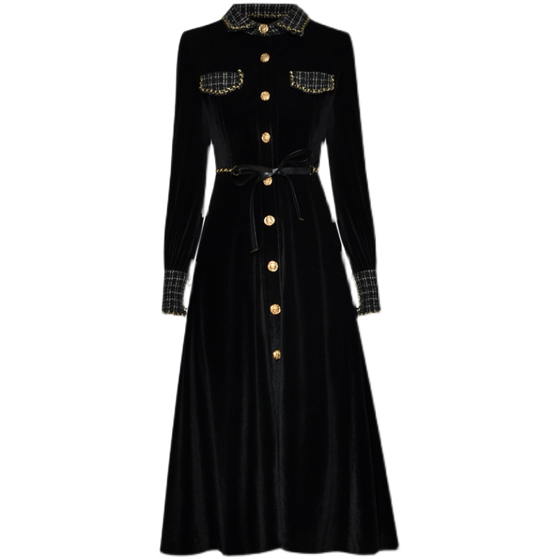 Fleepmart Gorgeous Runway Designer High Quality Autumn Winter Women’S Party Workplace Vintage Elegant Chic Velvet Black Long Sleeved Dress