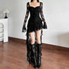 Fleepmart Goth Dark Fairycore Lace Flare Sleeve Square Neck A-line Dress Sweet E-girl Irregular Long Hem Dresses Cyber Y2K Party Vestido
