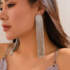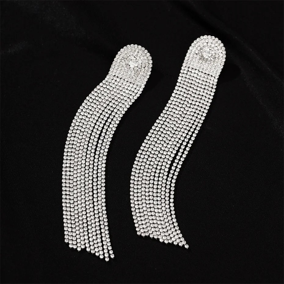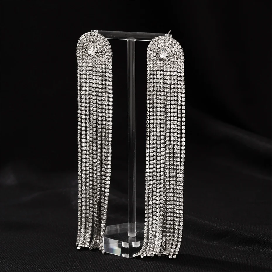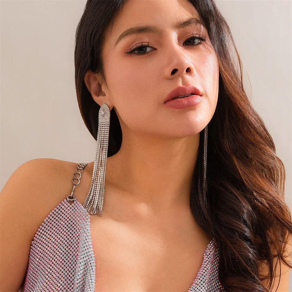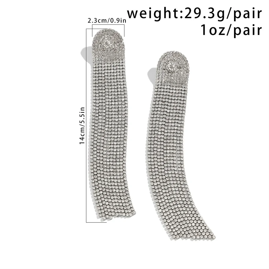 Fleepmart Goth Luxury Rhinestone Round Tassel Drop Earrings for Women 2024 Trend Kpop Crystal Piercing Dangle Earring Wed Jewelry