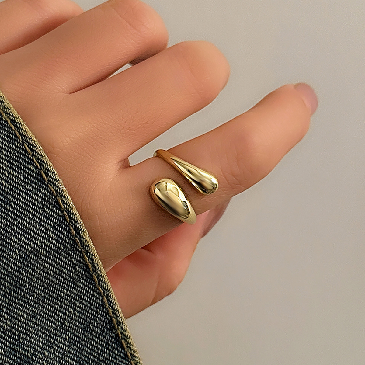 Fleepmart Gothic Creative Metal Droplet Ring Fashion Gold Color Adjustable Opening Ring Women’s Aesthetic Party Jewelry Gift