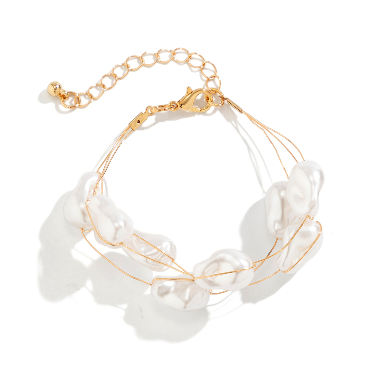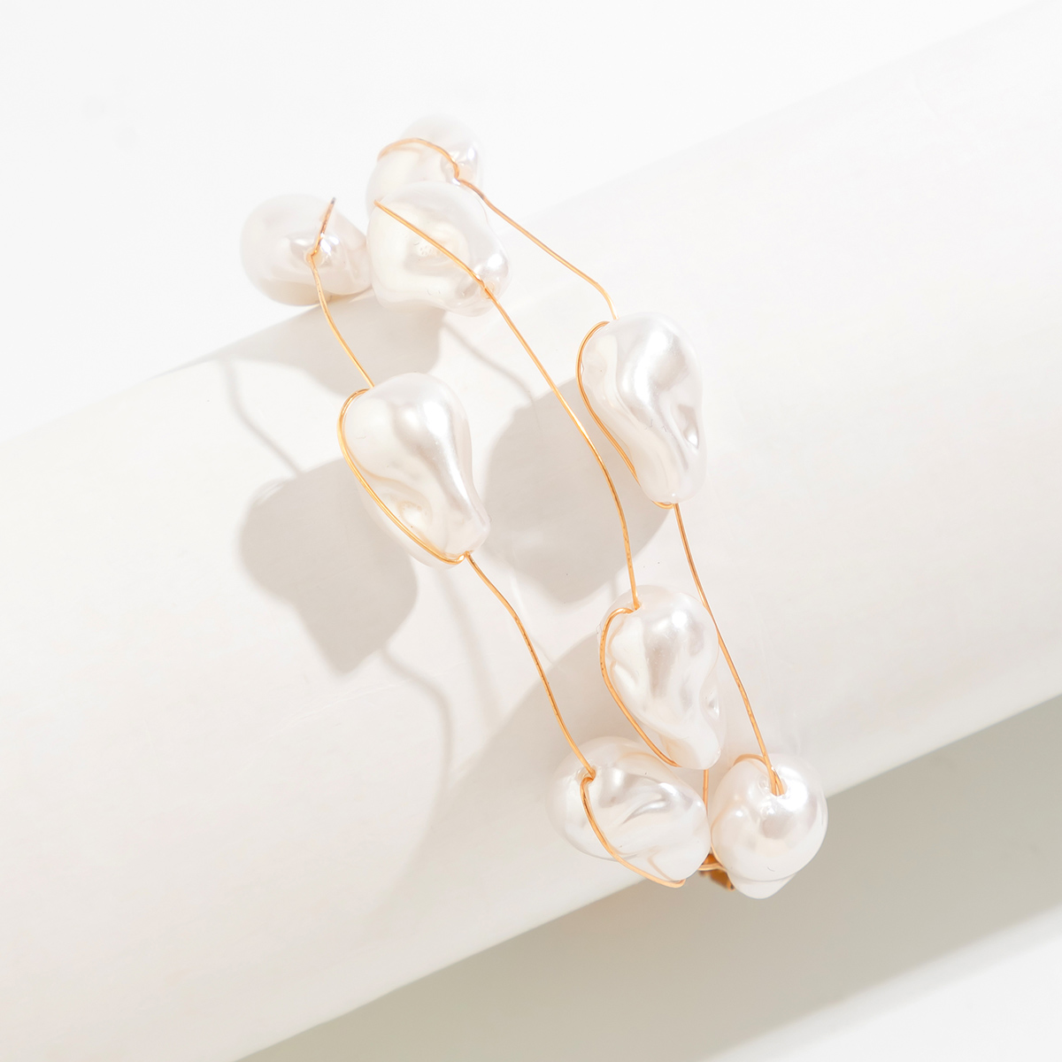 Fleepmart Gothic Multi-layer Baroque Imitation Pearl Bracelet Simple Metal Wire Chain Bracelet Women’s Aesthetic Party Jewelry