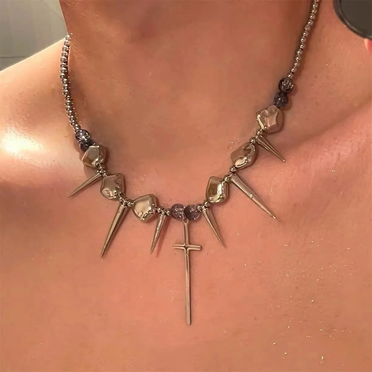 Fleepmart Gothic Punk Cross Pendant Necklace for Women Men Vintage Unisex Black Hip-Hop Chain Fashion Accessories