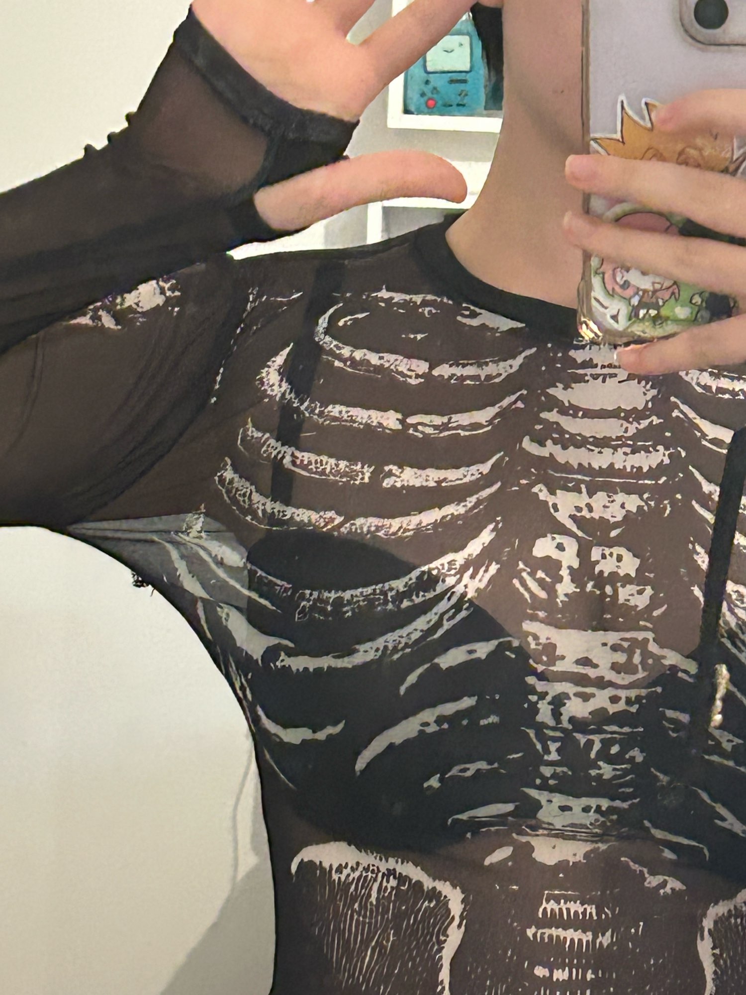 MM I LOVE E ITTT YESSS!!! honestly, peak! unfortunately its pretty cropped :( but I guess everything is cropped these days jajaja. otherwise, I love it! thin meshy material but it looks so good on and would make for some crazy layering that im excited to try out and make some outfits. I love the design sm 🙏😭 quality is pretty decent, and hopefully it'll be fine to wash in the machine without tearing :)