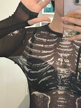 Fleepmart Gothic Punk Shirt 2000s Women Skeleton Pattern Round Neck Long Sleeve Crop Top Black Dark Academia Clothes y2k Tees Streetwear