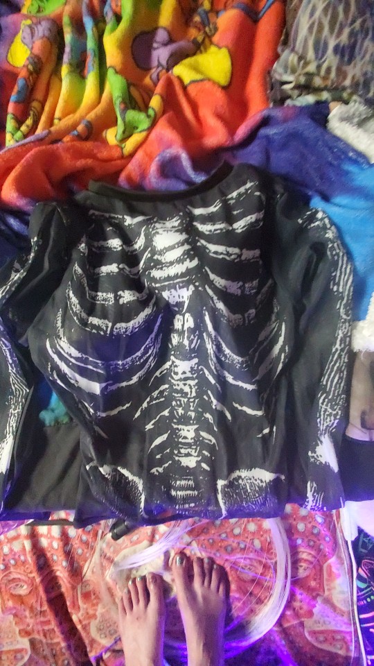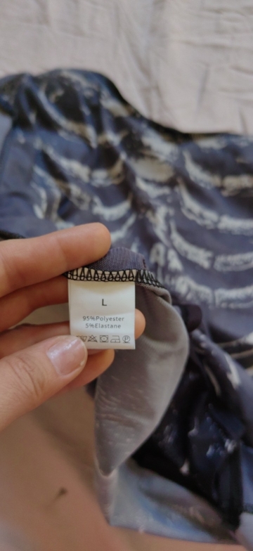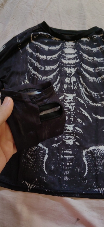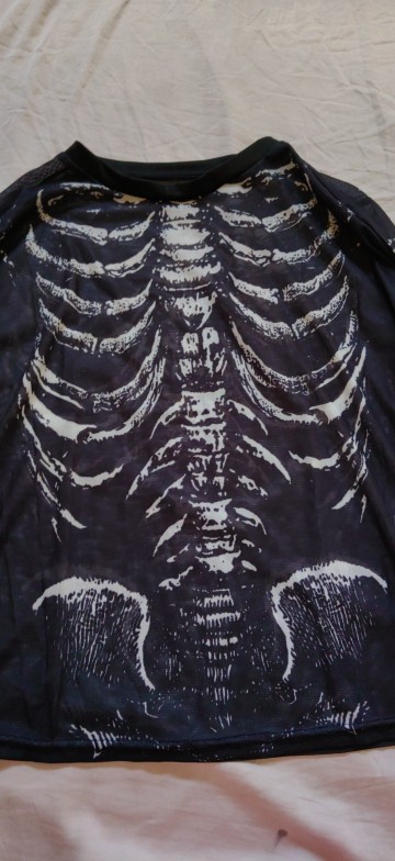 La camiseta es transparente, de buena calidad, tiene un estampado de huesos, costillas y la columna vertebral. Pedí una talla L. Mi peso es de 60 kg y mido 1.70mts. No me comuniqué con el vendedor. Volveré a comprarle próximamente. Gracias
