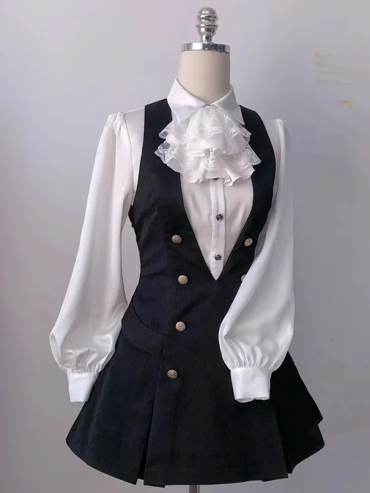 Fleepmart Gothic Retro Chic Outfit Women Bubble Sleeve Shirt + Slim Vest + Short Cake Skirt New Vintage Fashion 3 Piece Suit 2025