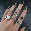 Fleepmart Gothic Silver Color Rings Set for Women Men Vintage Halloween Cross Skeleton Snake Playing Cards Fashion Jewelry Gifts