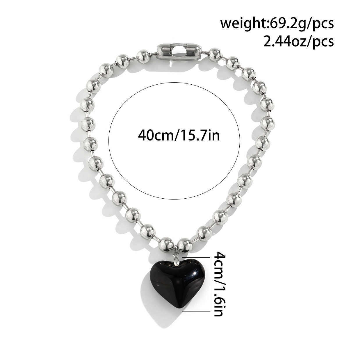 Fleepmart Gothic Simple Iron Bead Chain Choker Punk Shiny Glass Heart Pendant Collar Necklace Women’s Trend Charm Y2K Jewelry