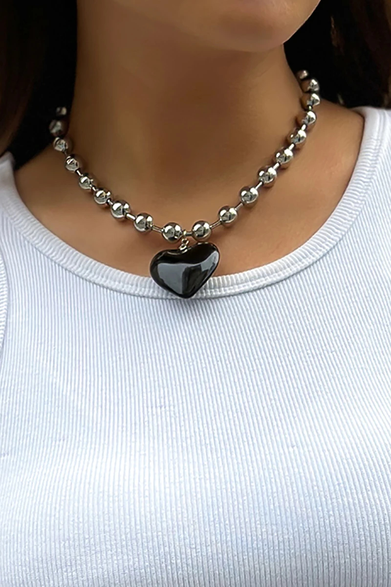 Fleepmart Gothic Simple Iron Bead Chain Choker Punk Shiny Glass Heart Pendant Collar Necklace Women’s Trend Charm Y2K Jewelry