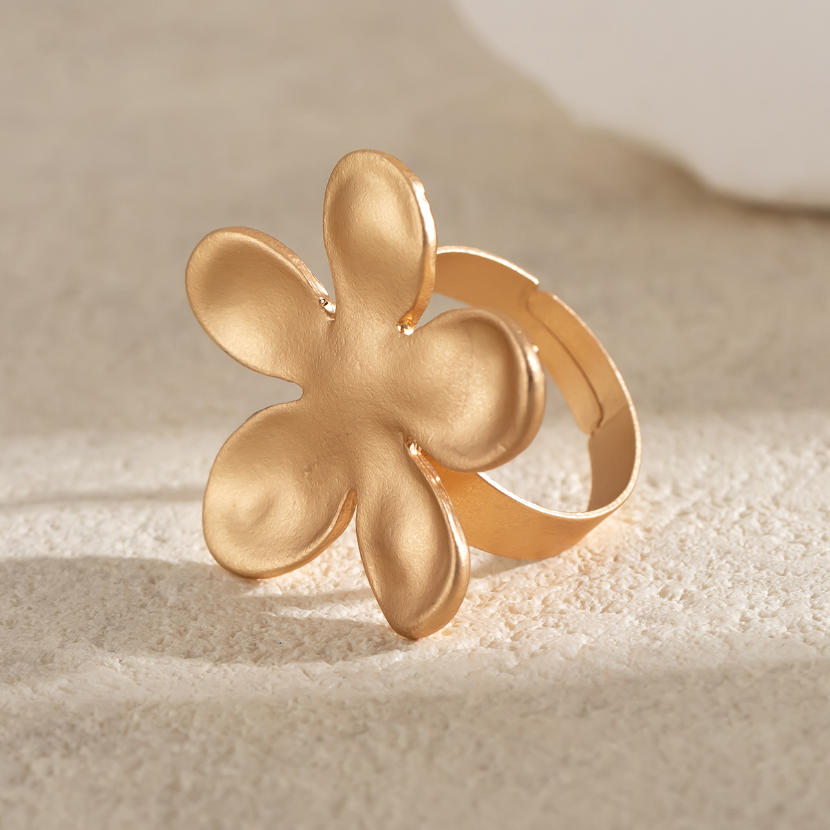 Fleepmart Gothic Smooth Metal Flower Ring Fashion Opening Adjustable Wide Ring Women’s Cute Bride Wedding Jewelry Accessories
