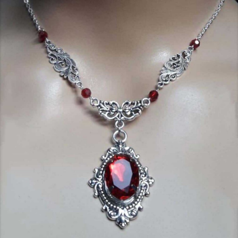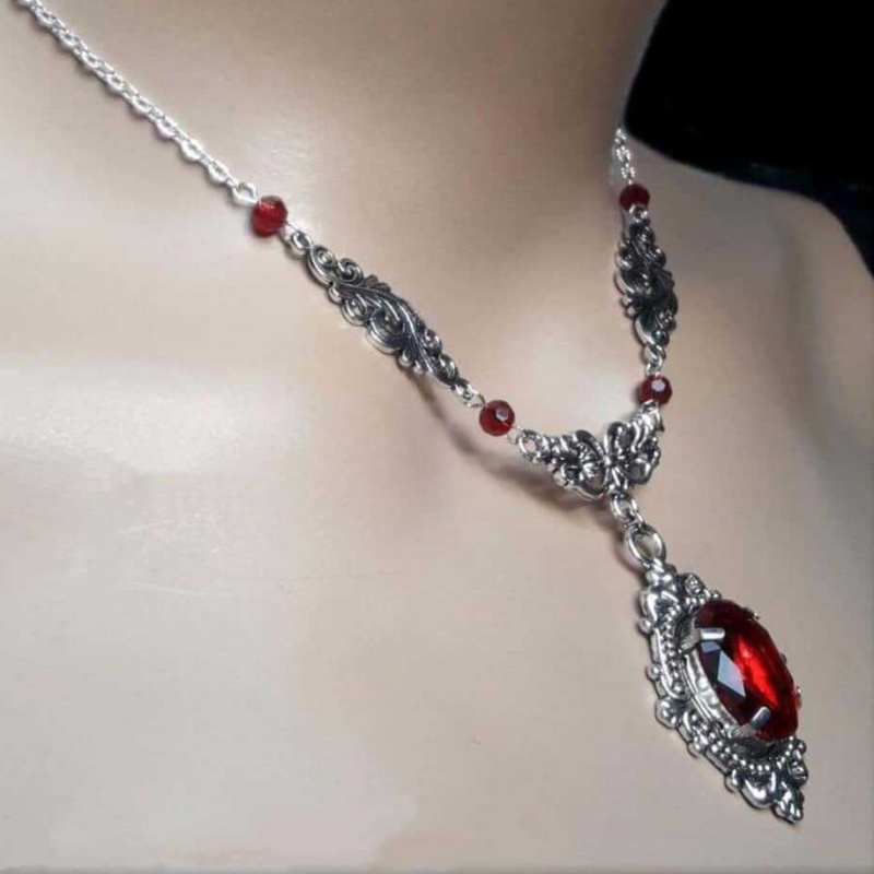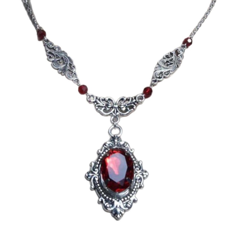 Fleepmart Gothic Vintage Red Quartz Crystal Necklace Butterfly Necklace Vampire Embossed Witch Jewelry Accessories Vintage Chokers