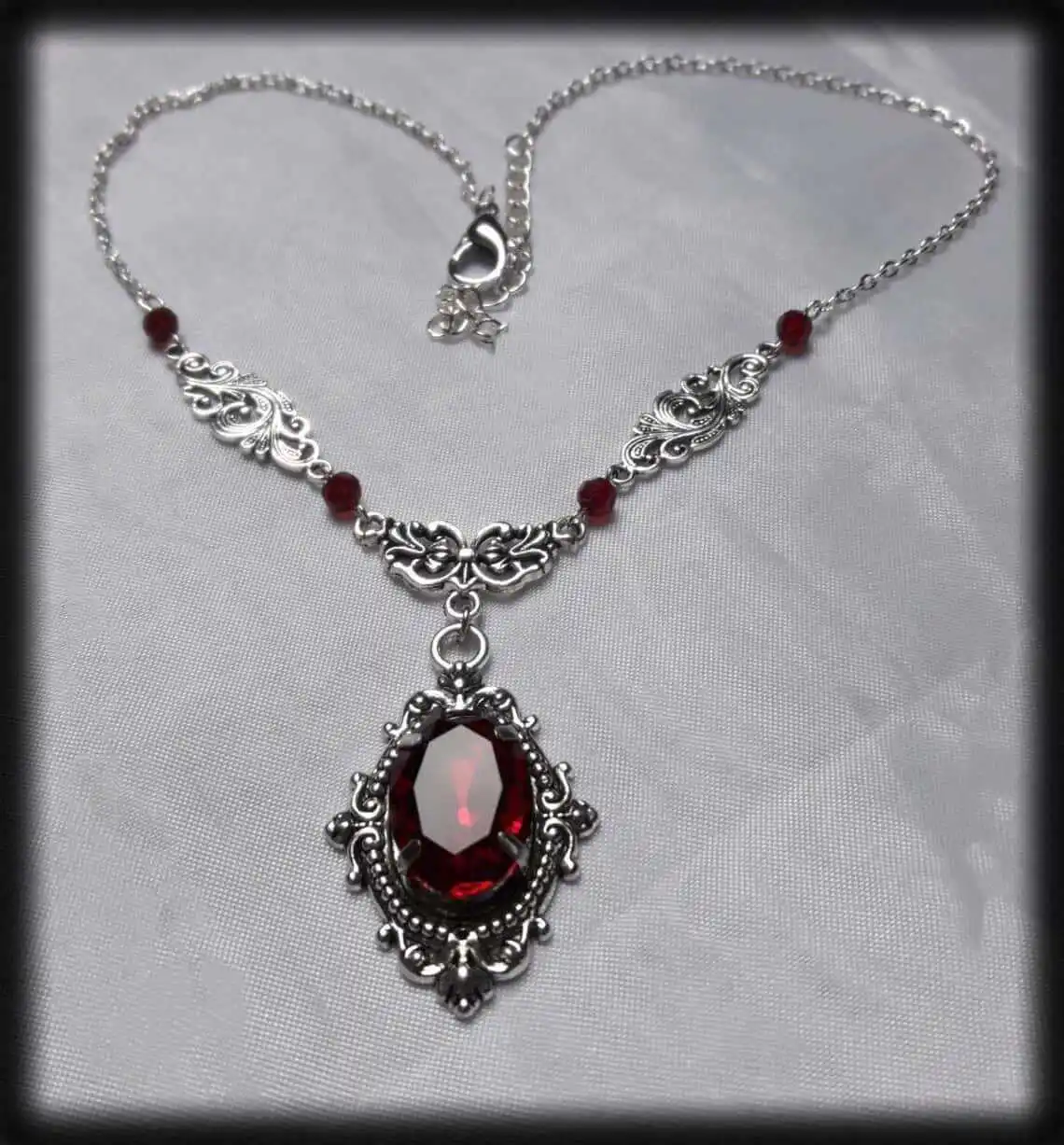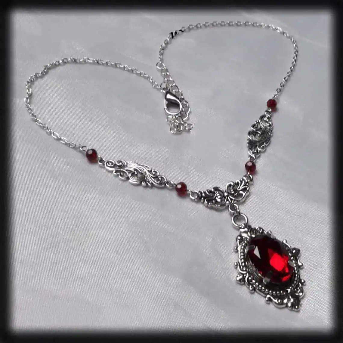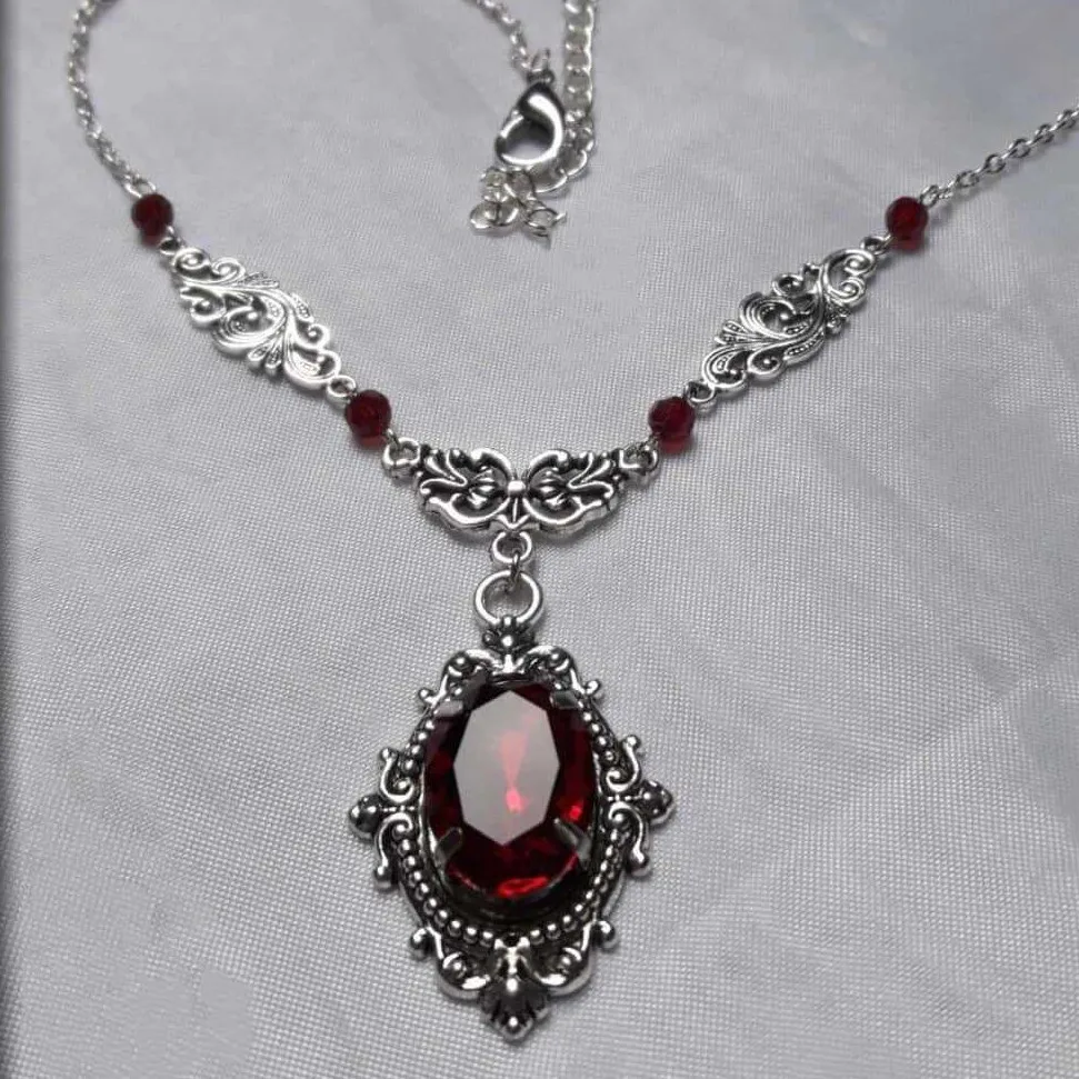 Fleepmart Gothic Vintage Red Quartz Crystal Necklace Butterfly Necklace Vampire Embossed Witch Jewelry Accessories Vintage Chokers