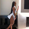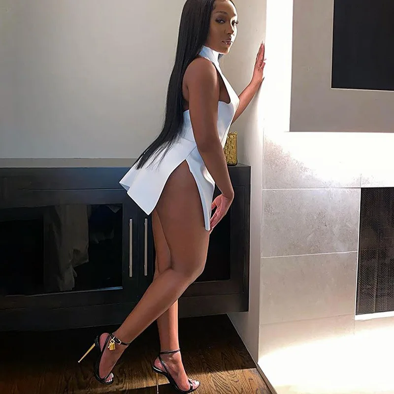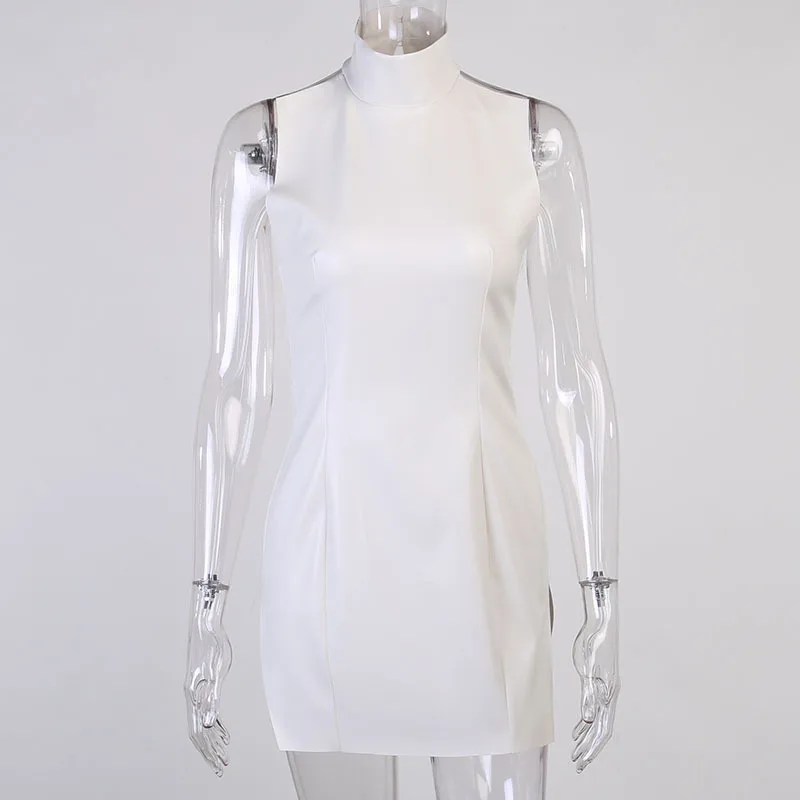 Fleepmart Gothic Women Bodycon Dress PU Leather Summer Vestido High Waist Sleeveless Sexy Slit Mini Dress Women Mock Neck Clothing