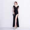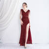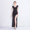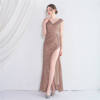 Fleepmart Gray Sequin V Neck Beading Evening Dress Sexy Slit Party Maxi Dress Women Long Prom Dress