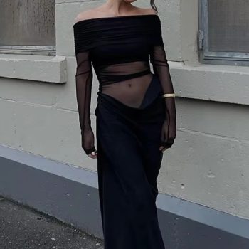 Fleepmart Gray Stand-Up Collar Bubble Long Sleeve Bodycon Sequin Party Maxi Dress