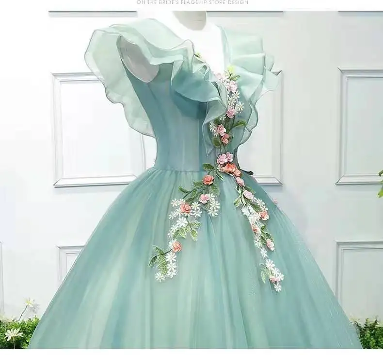 Fleepmart Green Quinceanera Dress Elegant V-neck Party Prom Ball Gown Sleeveless Sweet Floral Print Quinceanera Dresses Plus Size Vestidos