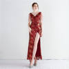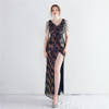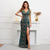 Fleepmart Green Sequin V Neck Beading Evening Dress Sexy Slit Party Maxi Dress Women Long Prom Dress
