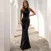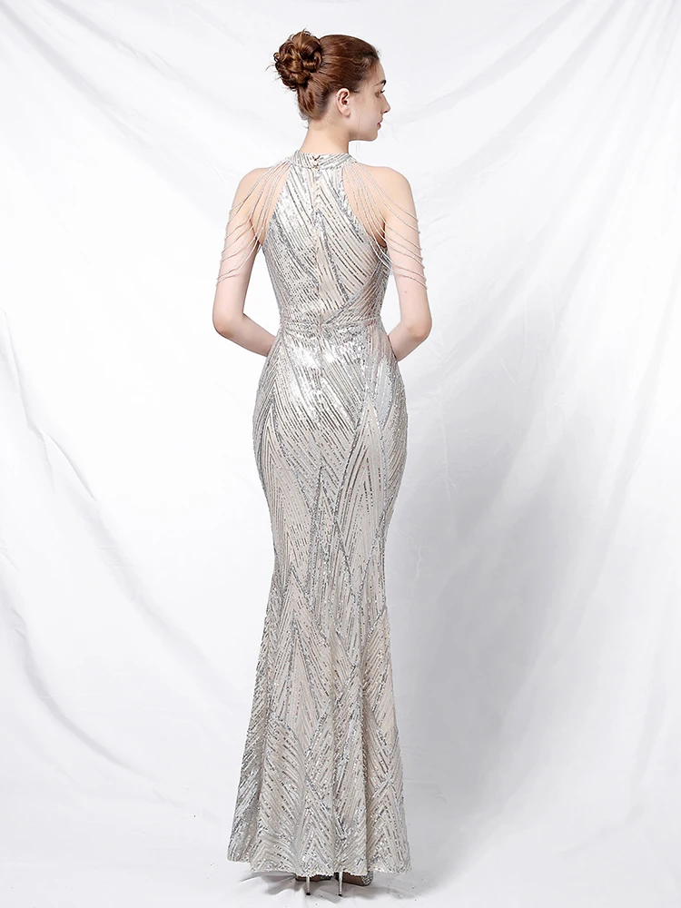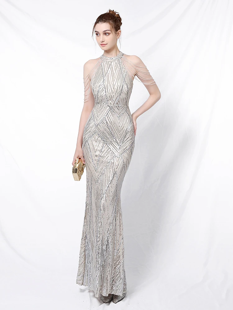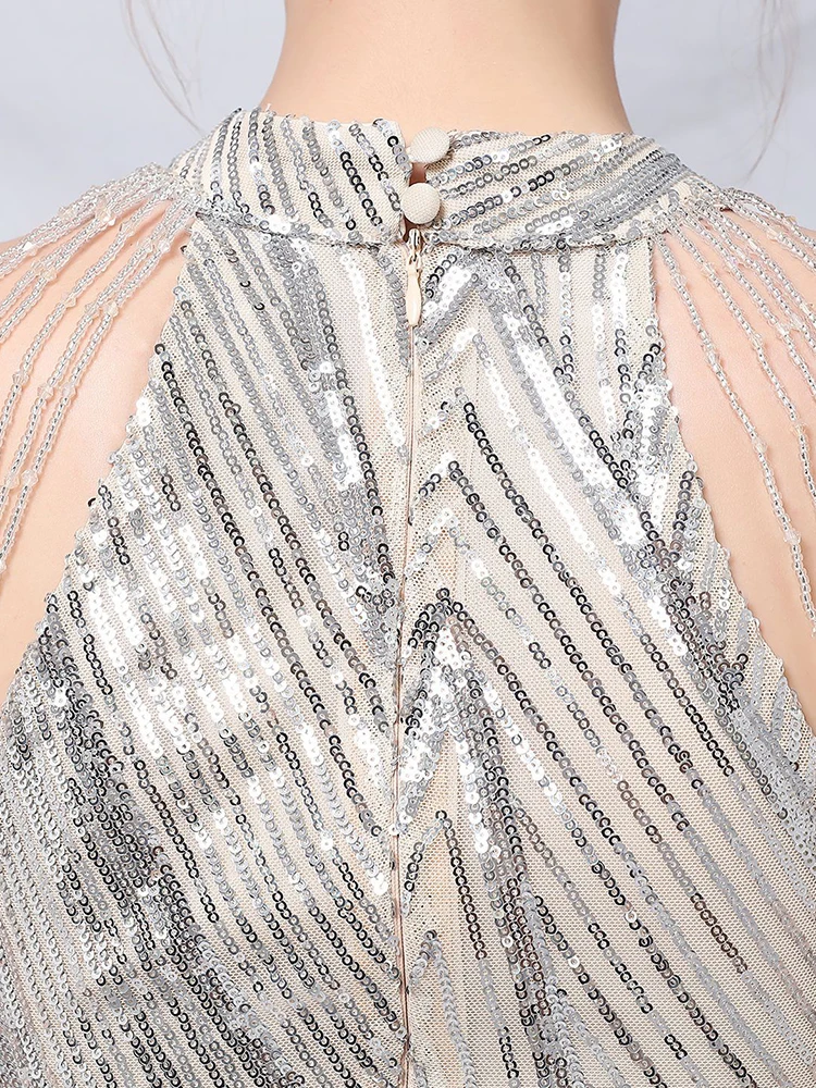 Fleepmart Halt Neck Dresses Woman Party Night Vestidos De Fiesta De Noche Evening Mermaid Dress Tassel Sleeve Sexy Cocktail Dress