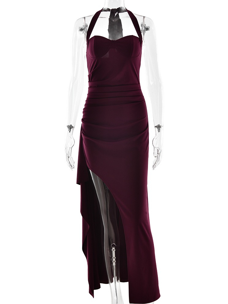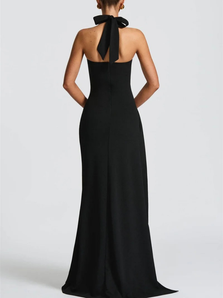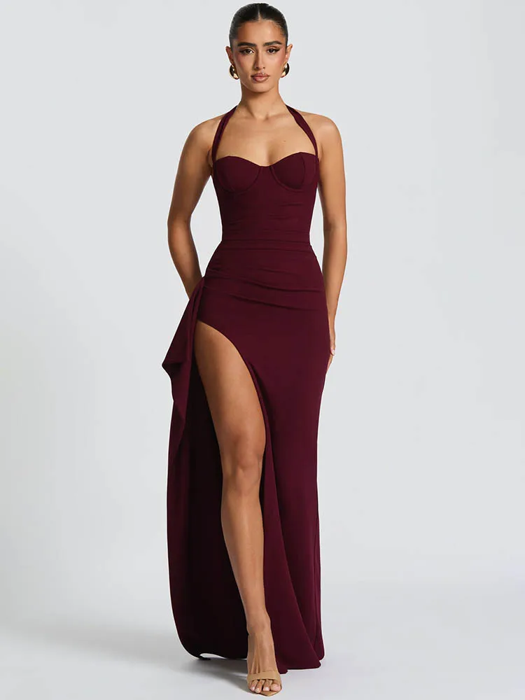 Fleepmart Halter Backless Sexy Maxi Dress Women Fashion Lace-up Sleeveless High Waist Thigh High Split Bodycon Evening Club Dress