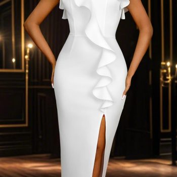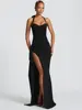 Fleepmart Halter Backless Sexy Maxi Dress Women Fashion Lace-up Sleeveless High Waist Thigh High Split Bodycon Evening Club Dress