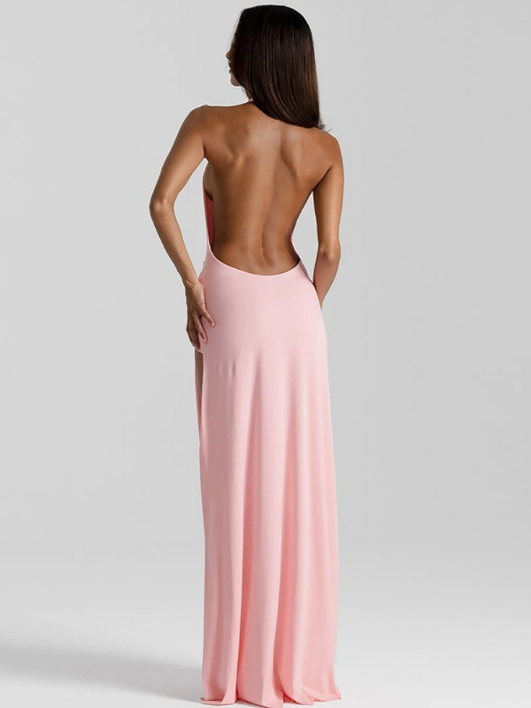 Fleepmart Halter Deep V Neck Backless Sexy Maxi Dress Women Gown Fashion Irregular Sleeveless Thigh High Split Club Party Dresses