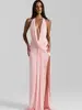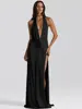 Fleepmart Halter Deep V Neck Backless Sexy Maxi Dress Women Gown Fashion Irregular Sleeveless Thigh High Split Club Party Dresses