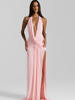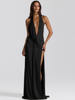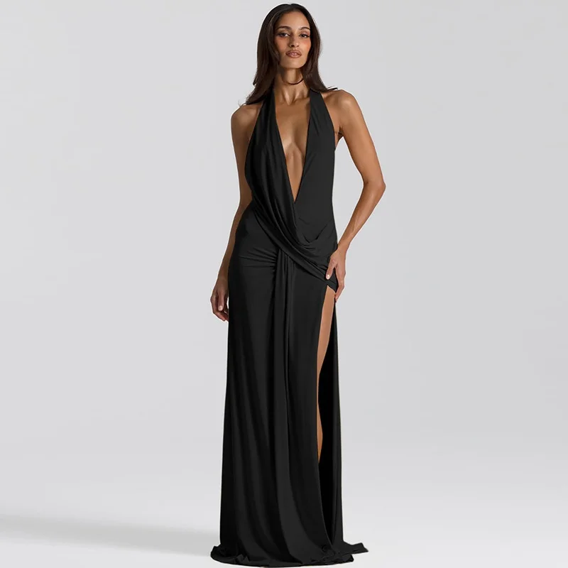 Fleepmart Halter Deep V Neck Backless Sexy Maxi Dress Women Gown Fashion Irregular Sleeveless Thigh High Split Club Party Dresses