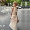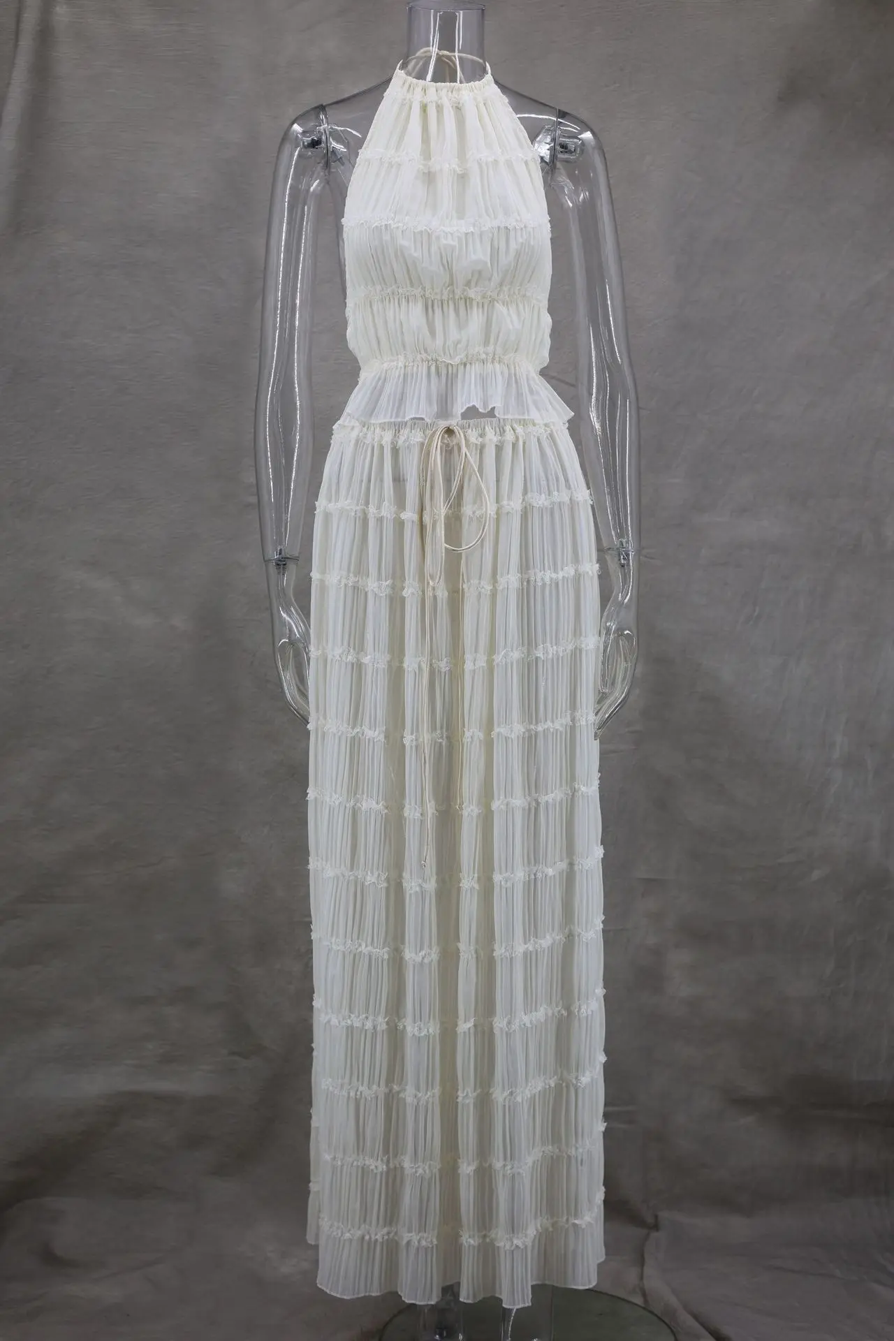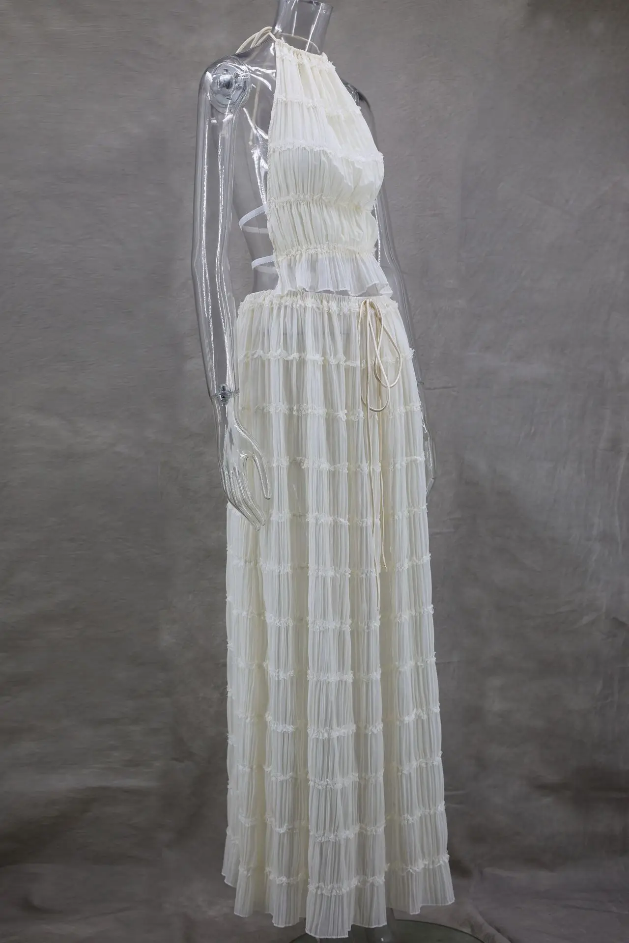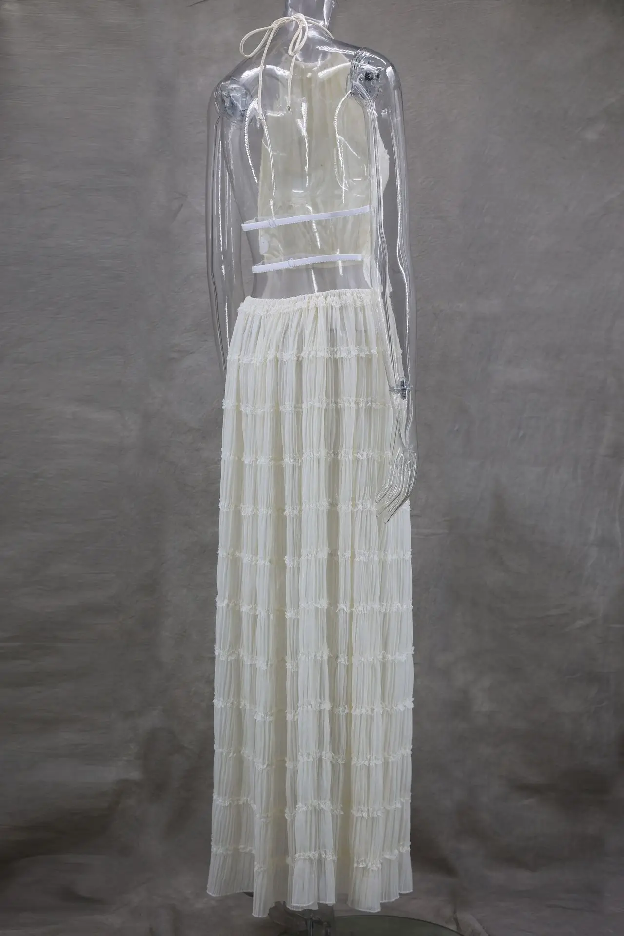 Fleepmart Halter Neck Long Skirt Suit Women Summer Party Beach Backless Sling Top + Lace Up Fold Maxi Skirts 2 Piece Set Female Outfits