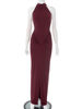 Fleepmart Halter Ruched Sexy Maxi Dresses for Women Gown Fashion Sleeveless Slim High Waist Evening Club Party Split Long Dress
