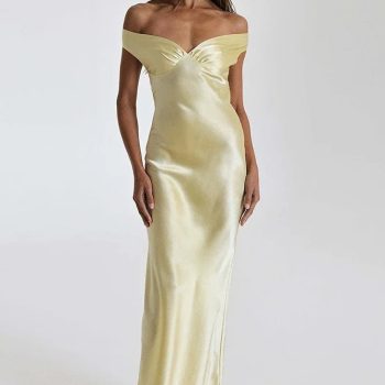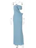 Fleepmart Halter Skew Collar Sexy Maxi Dress for Women Gown Hollow Out Strapless Sleeveless Backless Bodycon Club Long Dress