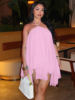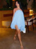 Fleepmart Halter Sleeveless Slim Fit Lace Up Irregular Chiffon Pleated Mini Dress Solid Sexy Casual Dress Party Club Summer Outfit