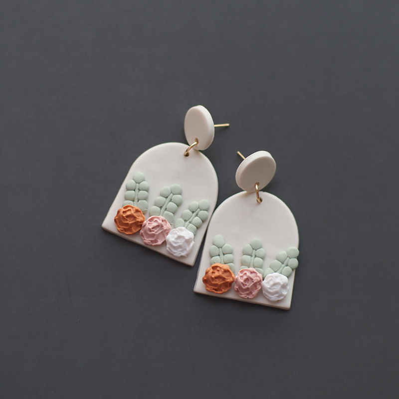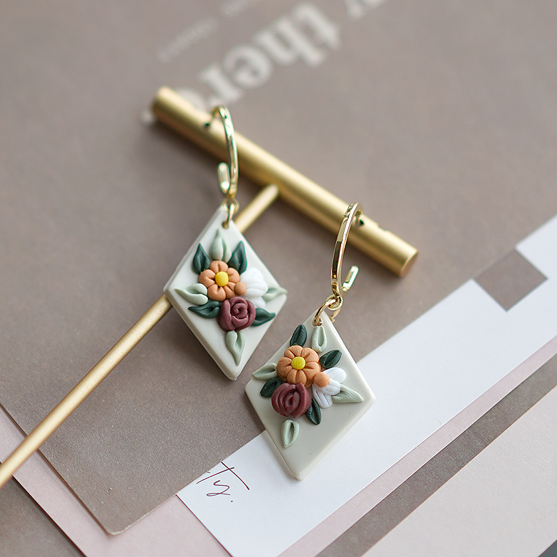 Fleepmart Handmade Crafts Molded Irregular Floral All Season Multi Colors Shapes Polymer Clay Pattern Earring Dangle Sets Women Jewelry