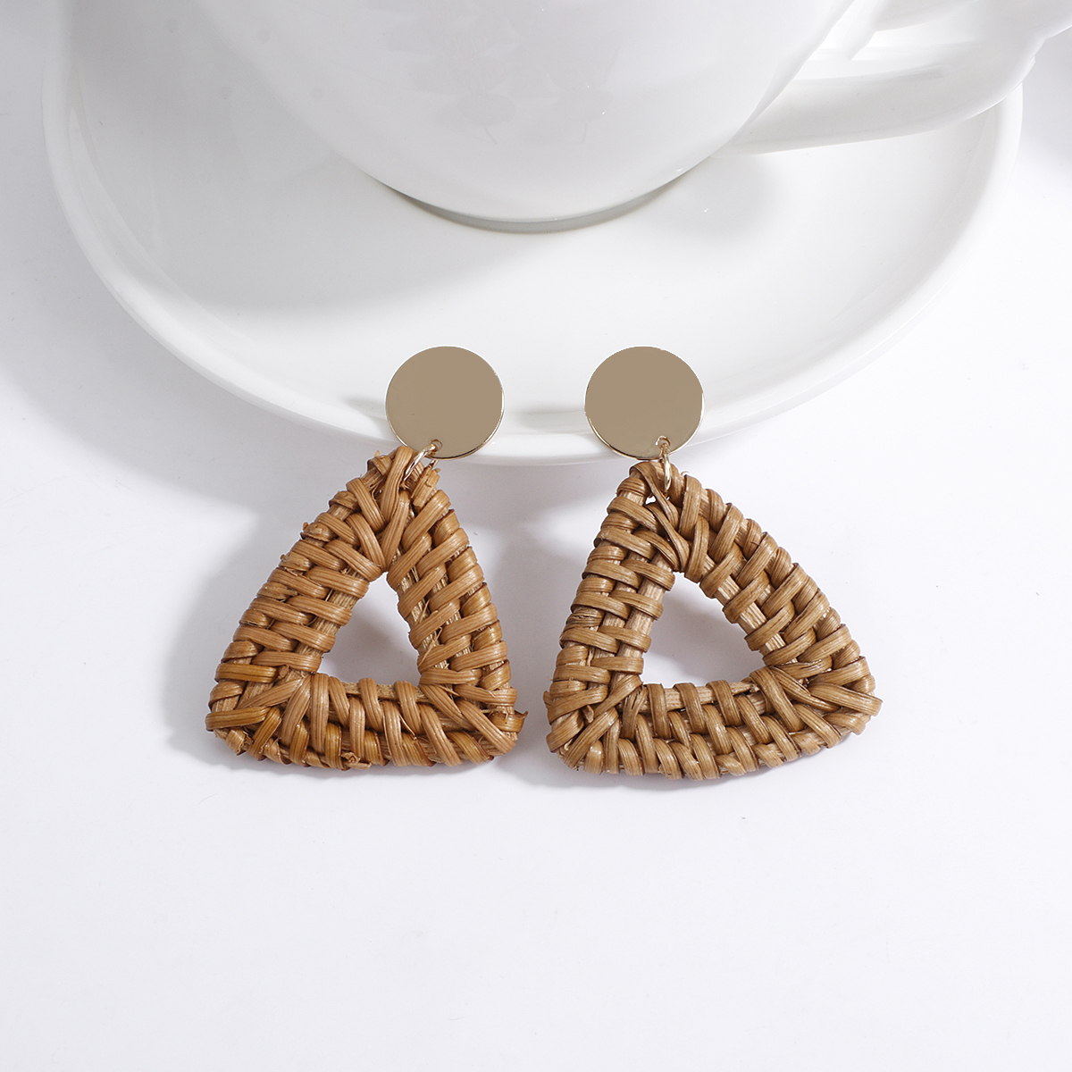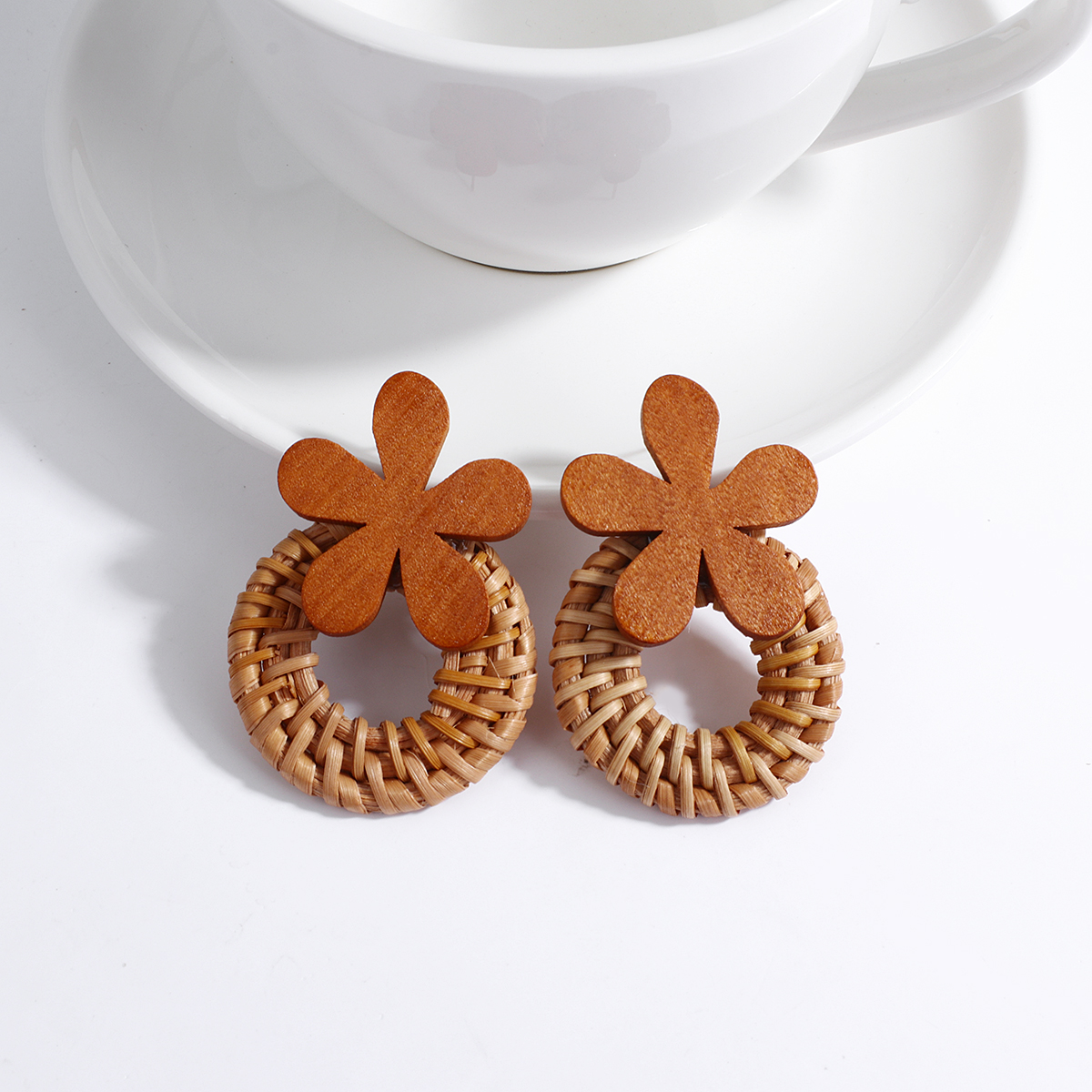 Fleepmart Handmade Rattan Wooden Drop Earrings for Women Bohemian Ethnic Geometric Round Waterdrop Wood Dangle Earrings Jewelry