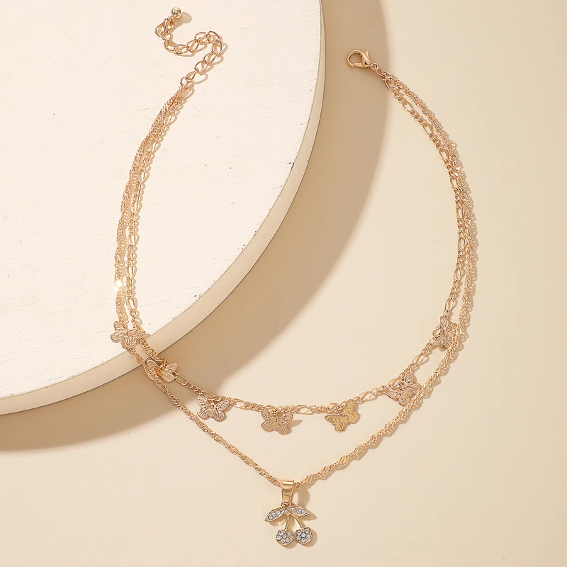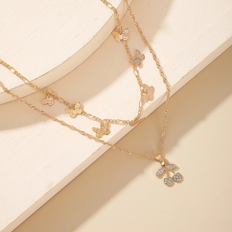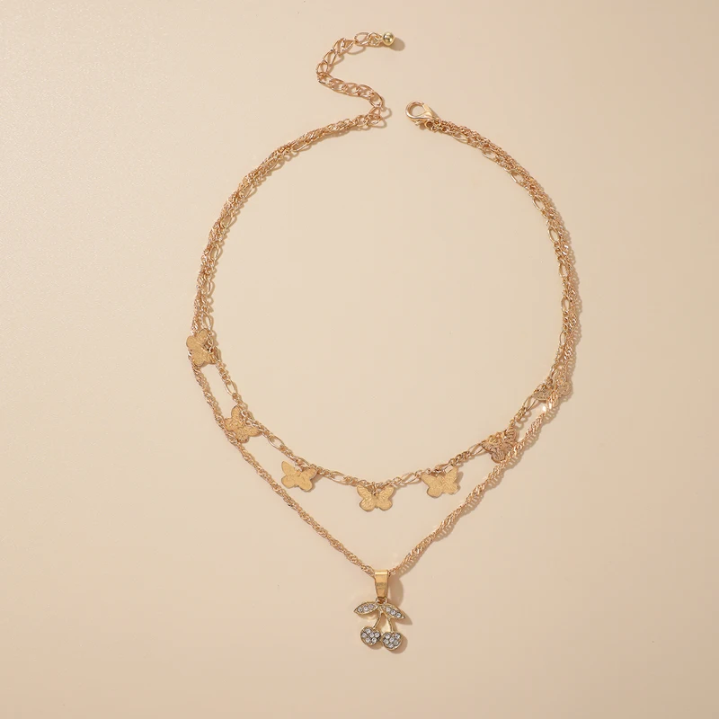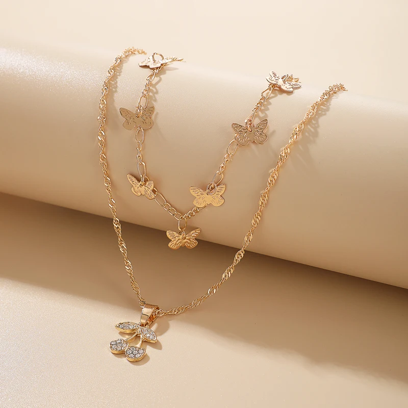 Fleepmart Heart Pendant Neckalce for Women Luxury Pearl Stone Butterfly Flowers Geoemtric Multi-layer Clavicle Chain Jewelry