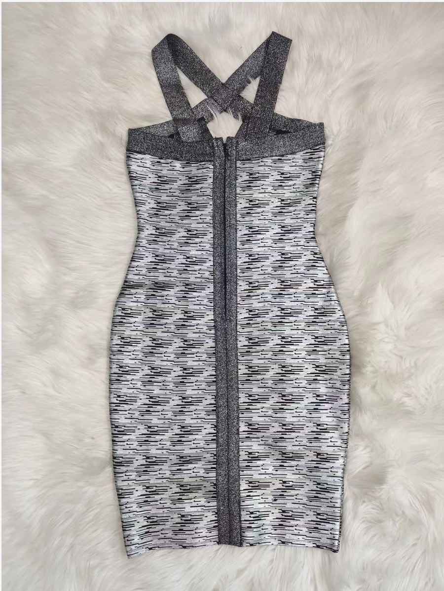 Fleepmart High Quality 2024 Black Gold Sleeveless Foiling Print Rayon Bandage Dress Fashion Club Party Dress Vestidos